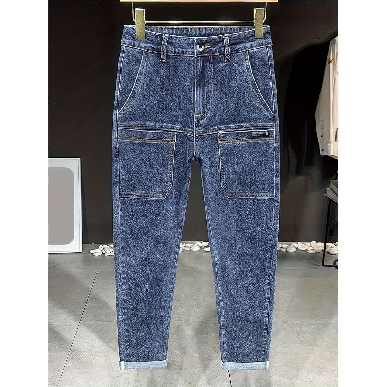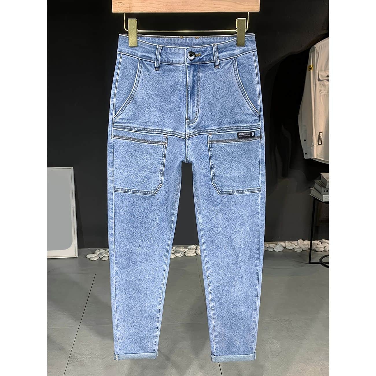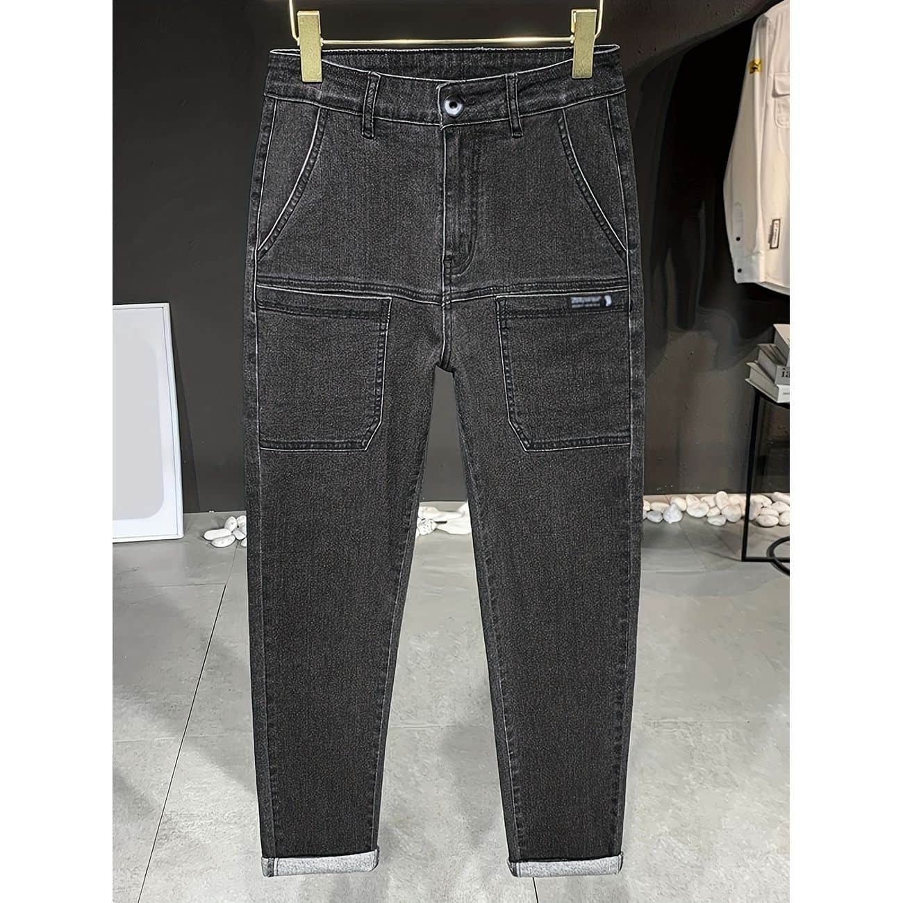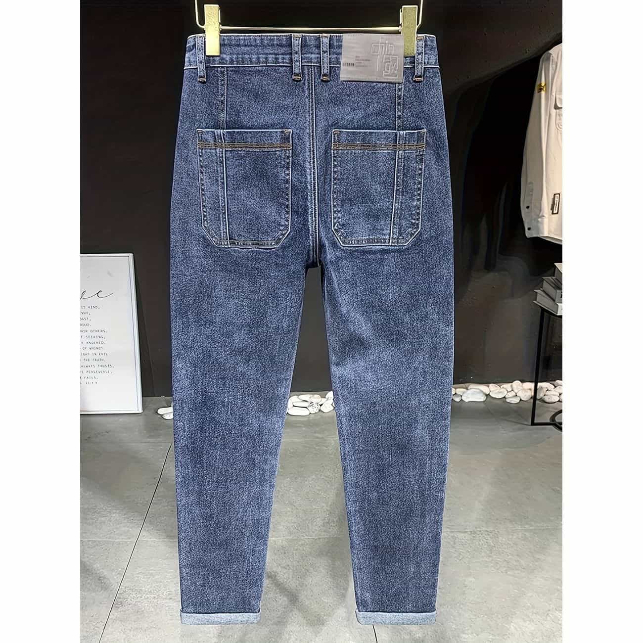 ◆【洗練されたシルエット】このスリムフィット デニムパンツは、脚のラインを美しく見せるストレートパンツ設計が魅力です。清潔感のあるカラーリングで、カジュアルな日常使いから華やかなディナーシーンまで幅広く対応。どんなトップスとも相性が良く、大人の上品なスタイルを演出するメンズ ボトムスの一本です。