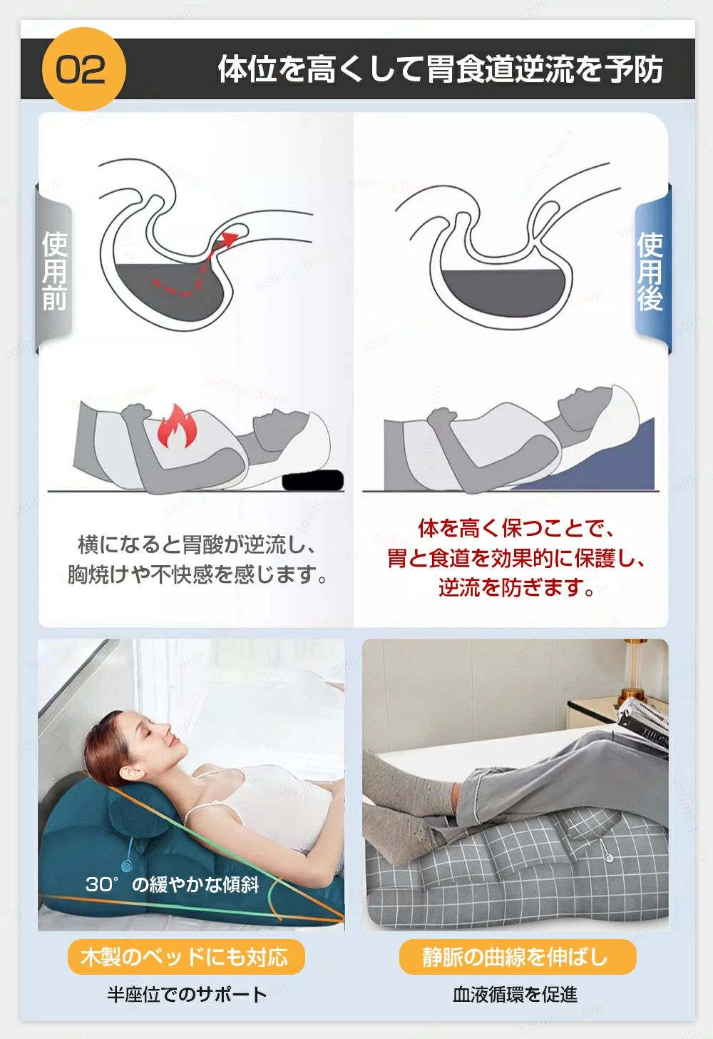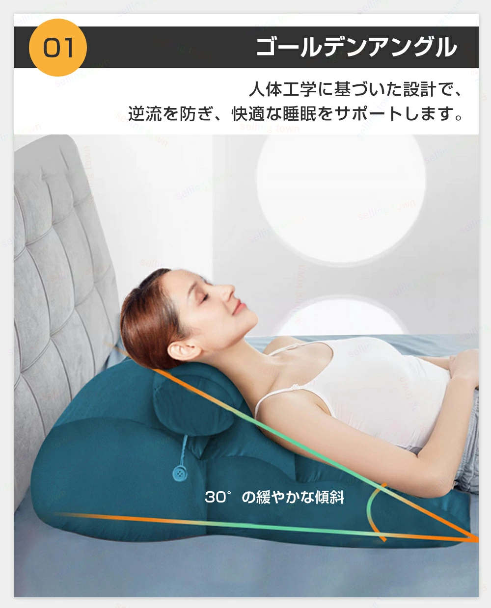 姿勢矯正 体圧分散 足上げ 読書用 就寝用 傾斜枕 腰痛改善グッズ ベッドの上 背もたれ 枕 クッション 腰枕 三角枕 逆流性食道炎