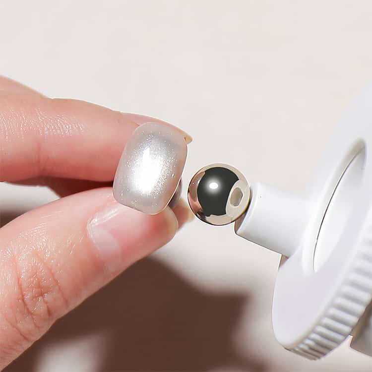 特別な技術は不要で、ネイル用マグネットを置いて回転させるだけで、数秒で息をのむような視覚効果を実現します。