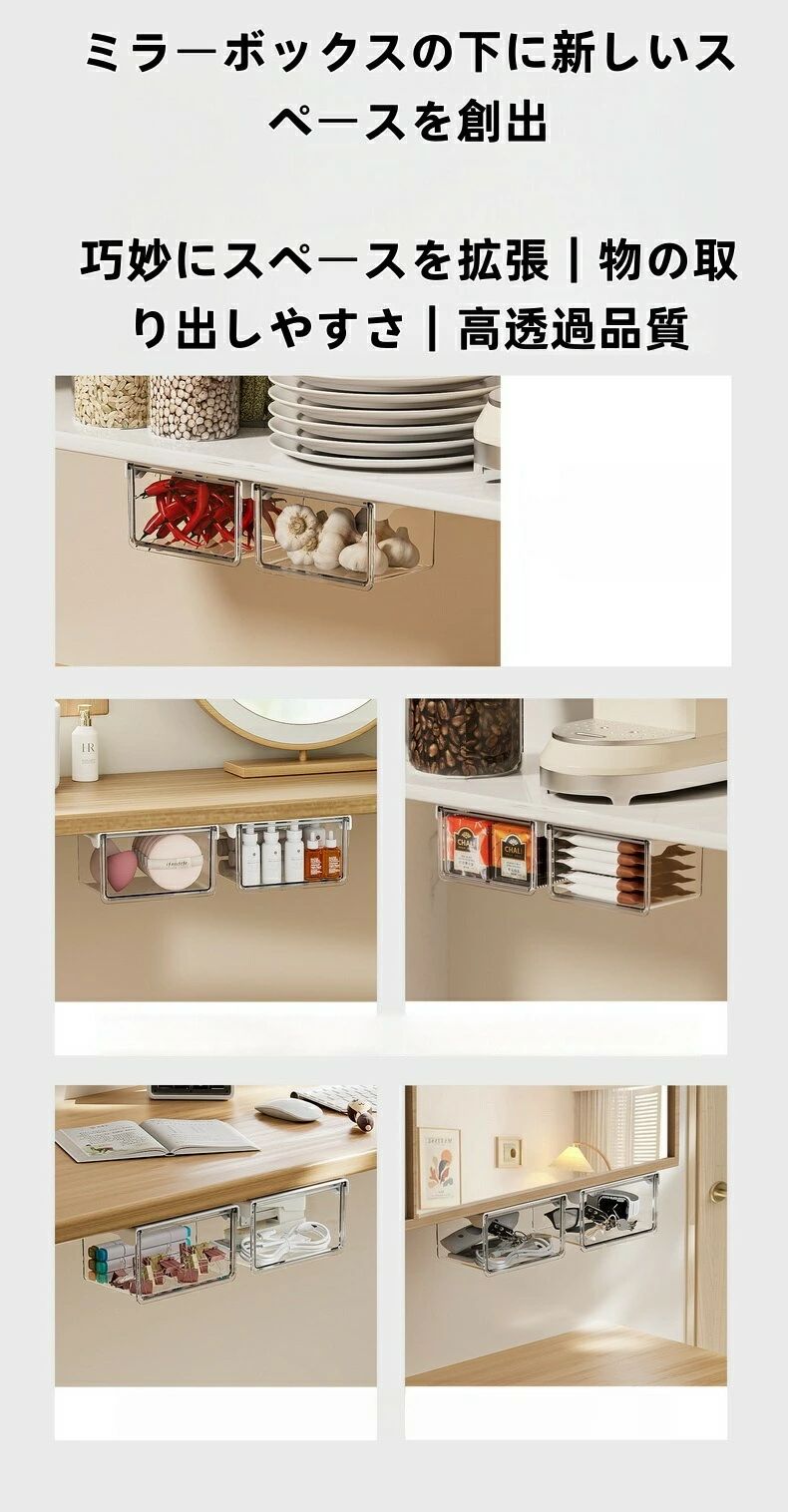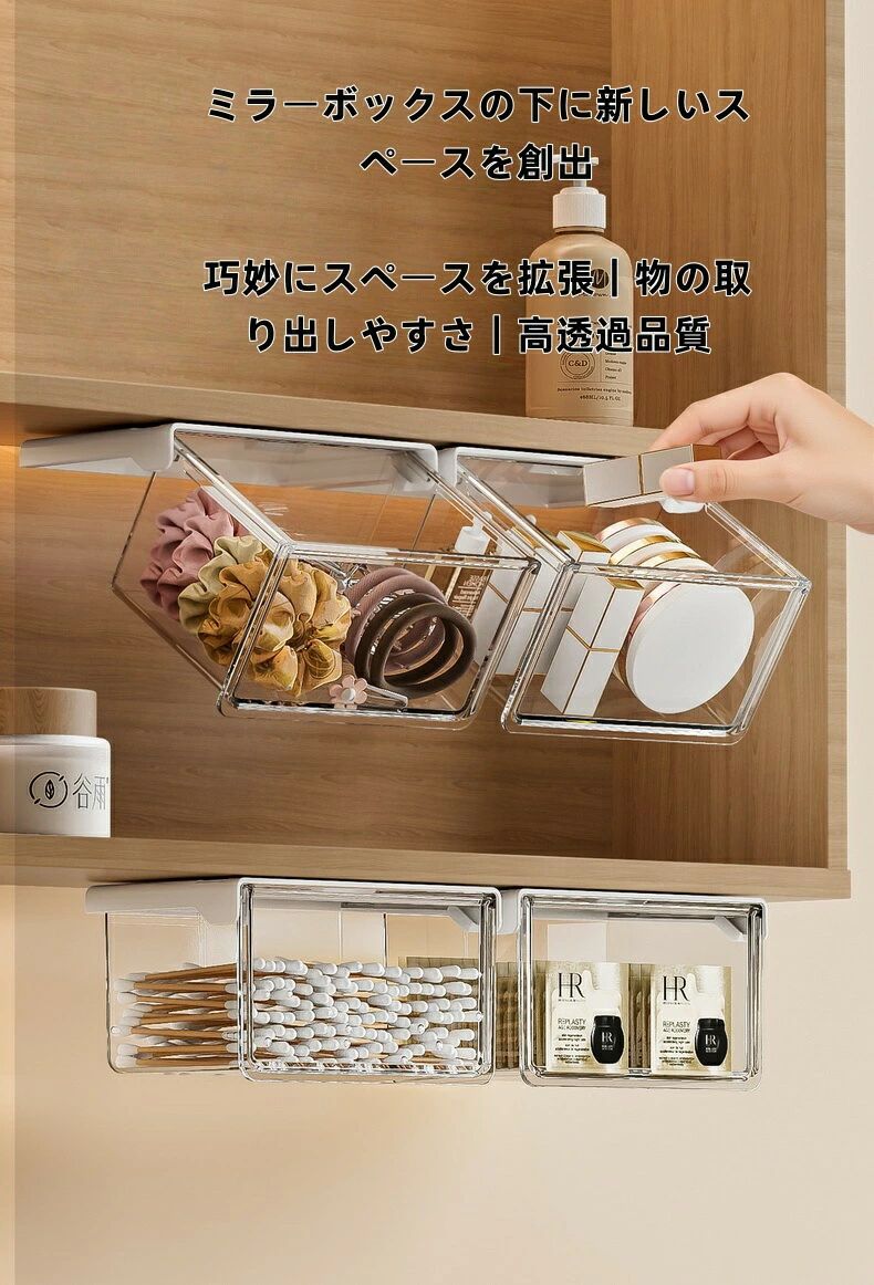 簡単取付 収納ボックス ミラーキャビン収納ボックス シンプル 透明 引き出し式 洗面所 オフィスデスク バスルーム 防水 収納ラッ 洗面台