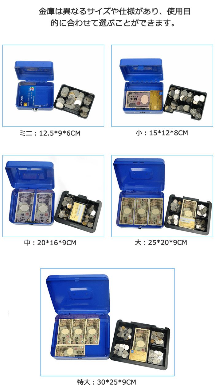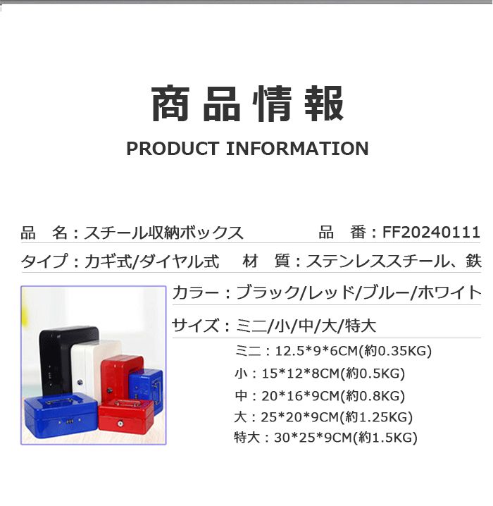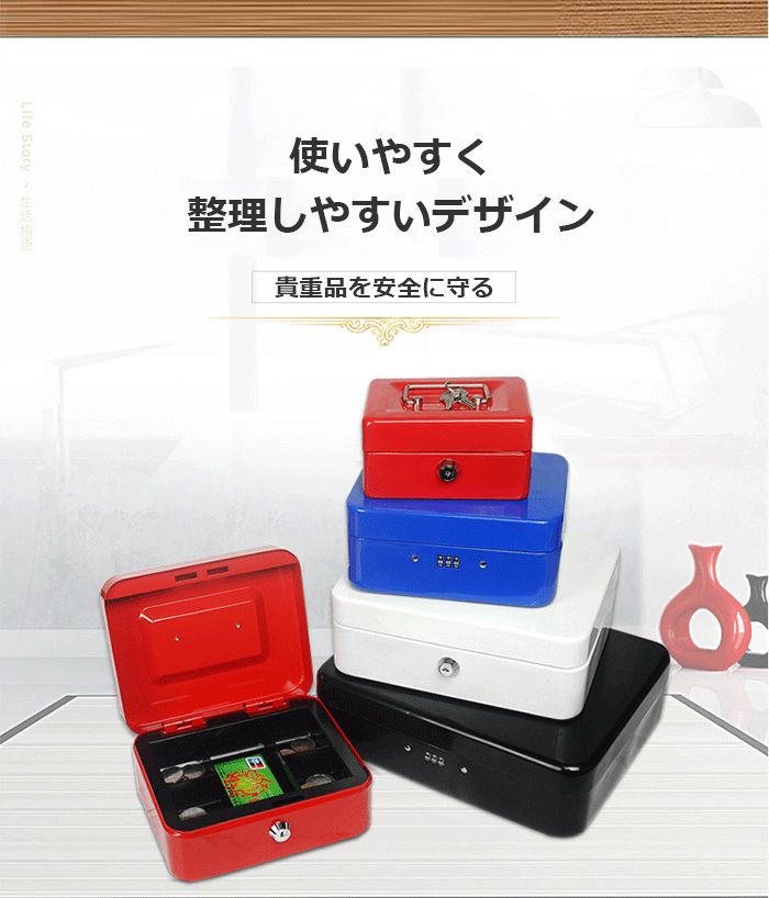 オフィス 盗難防止 手提げ 家庭用金庫 ブラック ブルー レッド ホワイト 小 中 大 特大