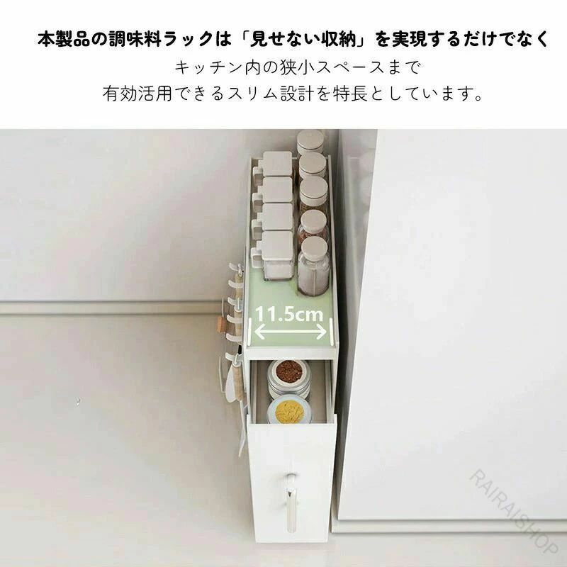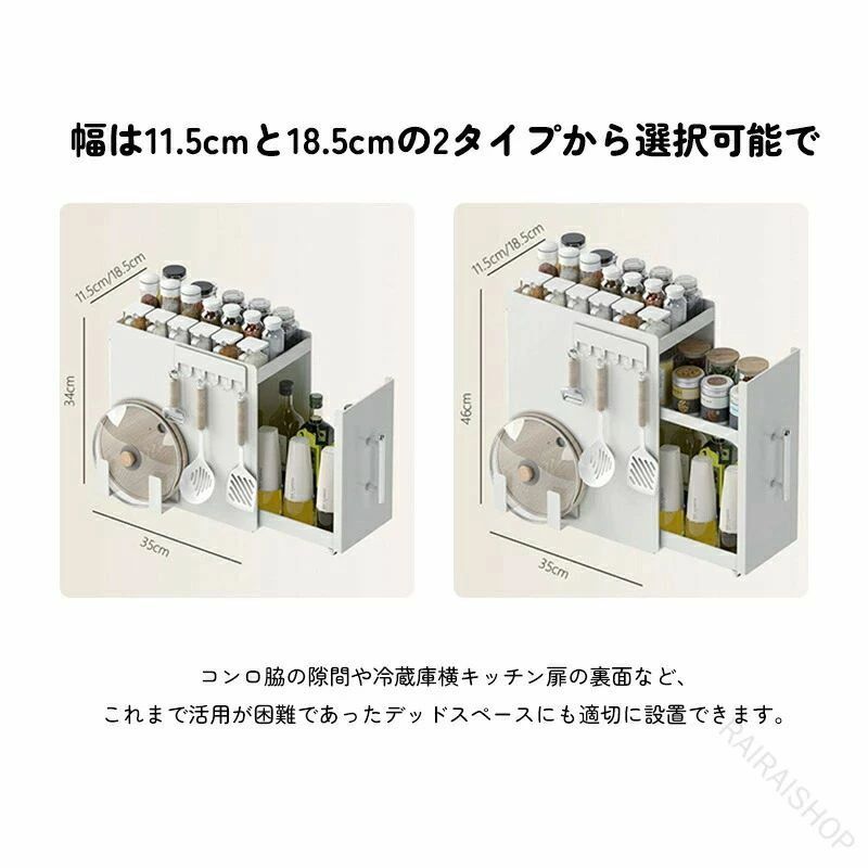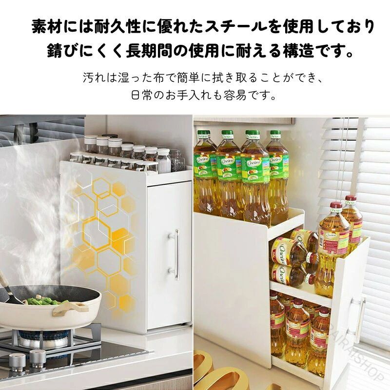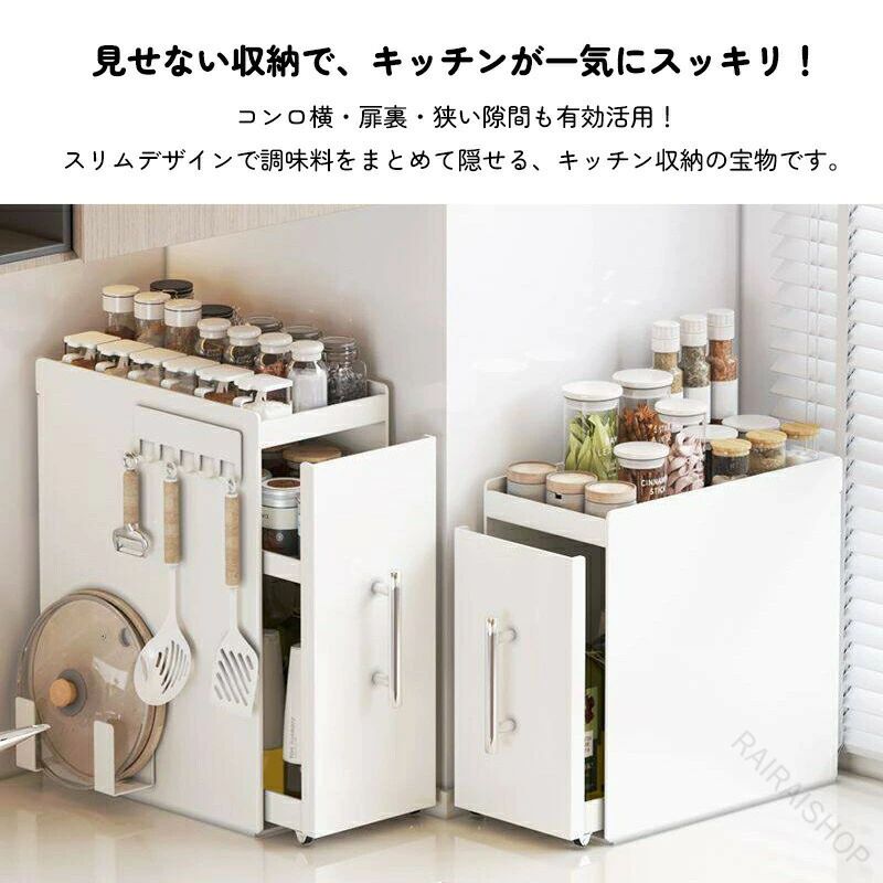 調味料ラック 2段 3段 引き出し付き スリム幅11.5cm 18.5cm 多段可動棚 キャスター付き スチール製 キッチン収納 調味料 油 省スペース