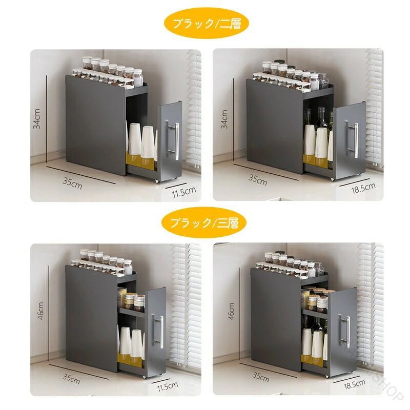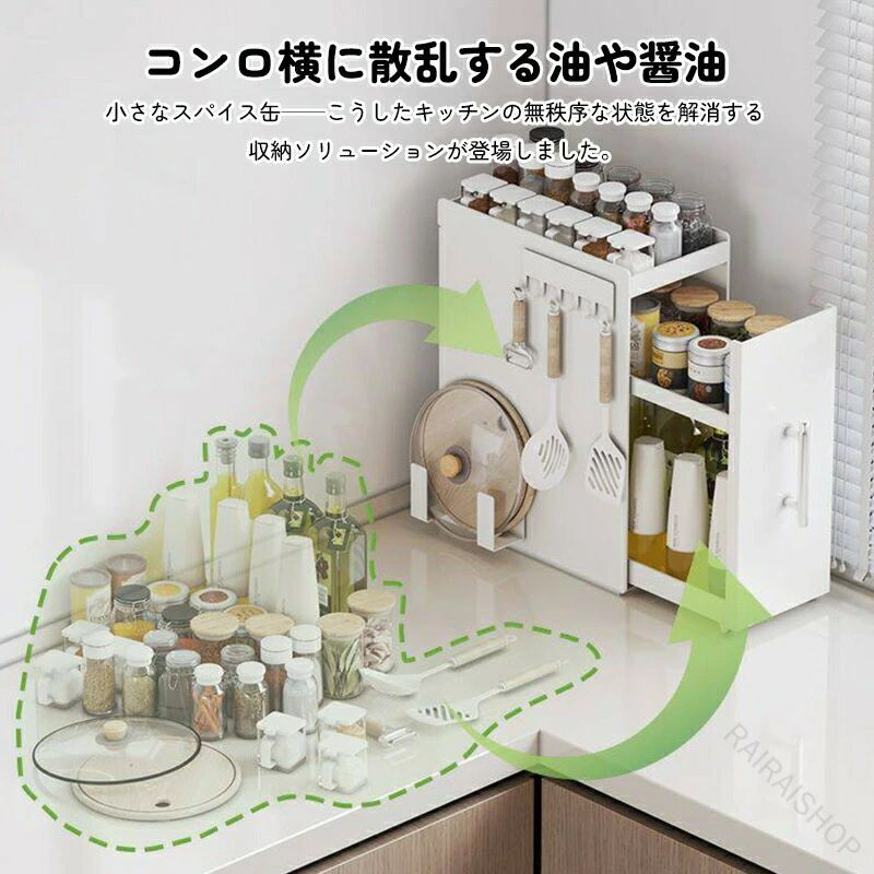 調味料ラック 2段 3段 引き出し付き キッチン整理用品 整理ボックス 早い者勝ち ホワイト ブラック 二層 三層