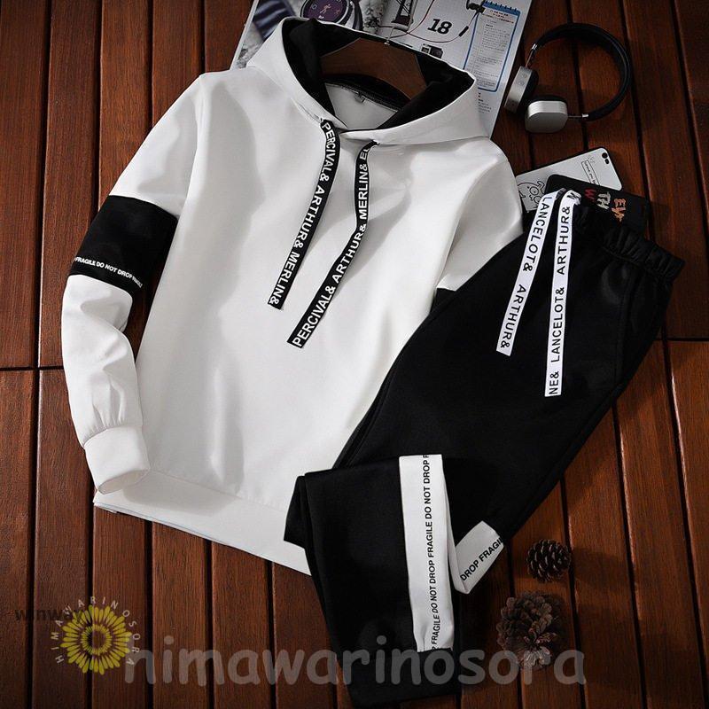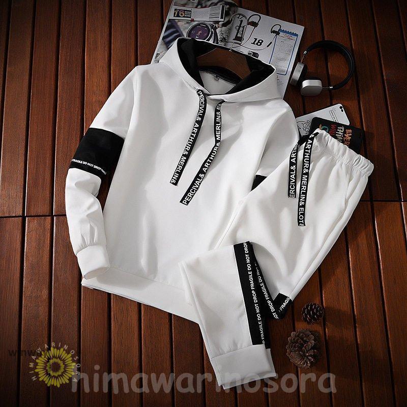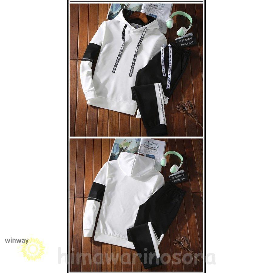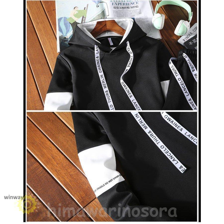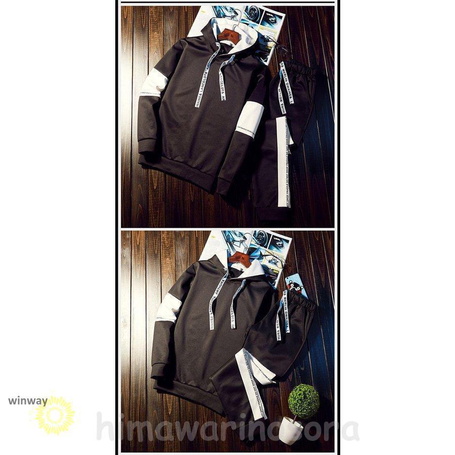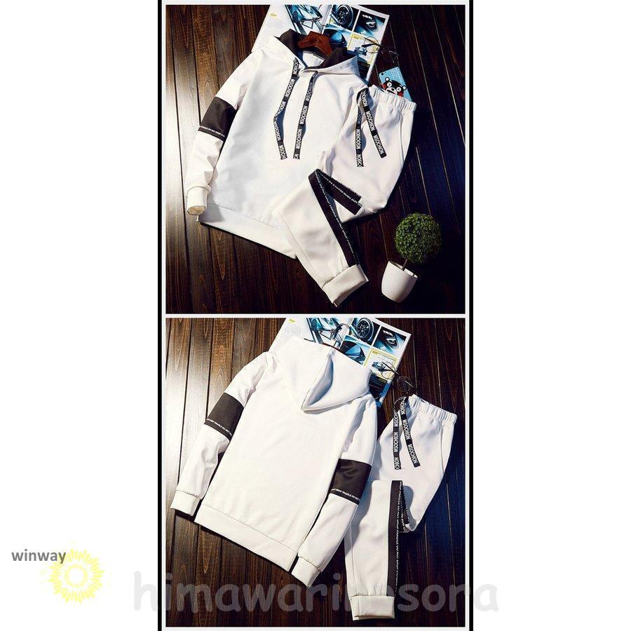 セットアップ メンズ ジャージ 上下セット 春秋 ジョガーパンツ 英字プリント フード付き カジュアル 部屋着 ルームウェア 運動用