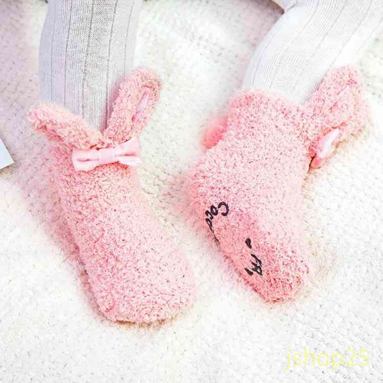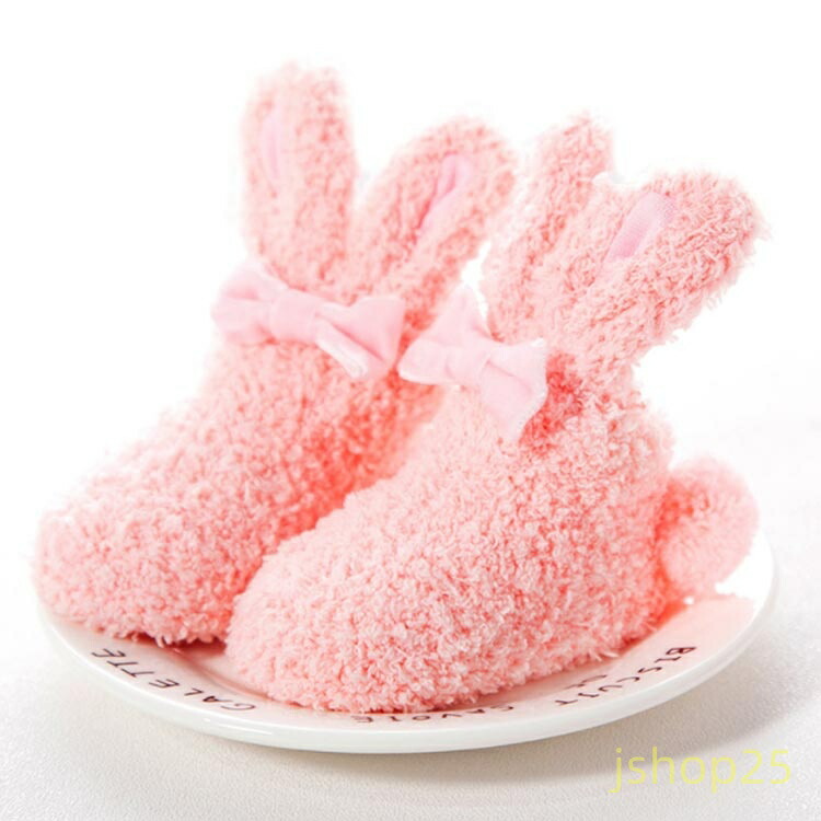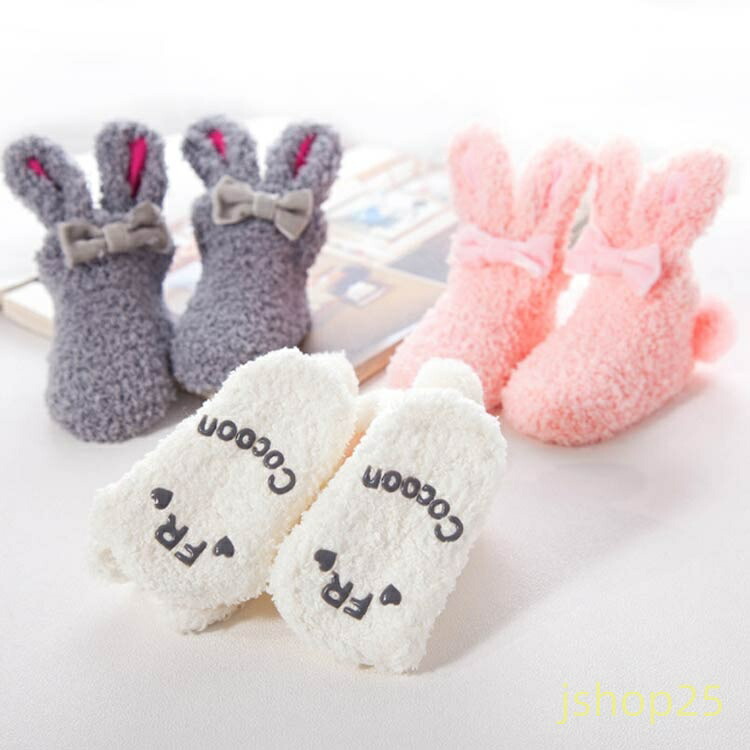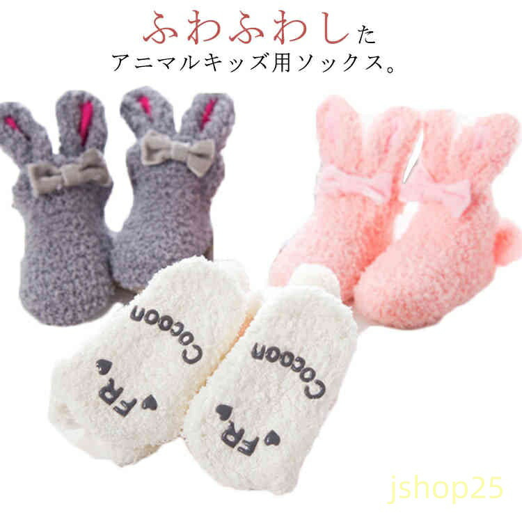 もこもこ暖か靴下 ソックス 子供 ベビーソックス キッズ ルームソックス 動物キャラクター うさぎ 耳付き 可愛い 防寒靴下 滑り止め付き 靴下