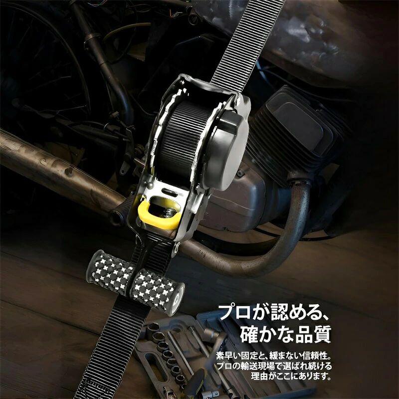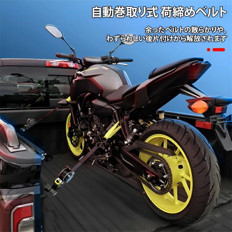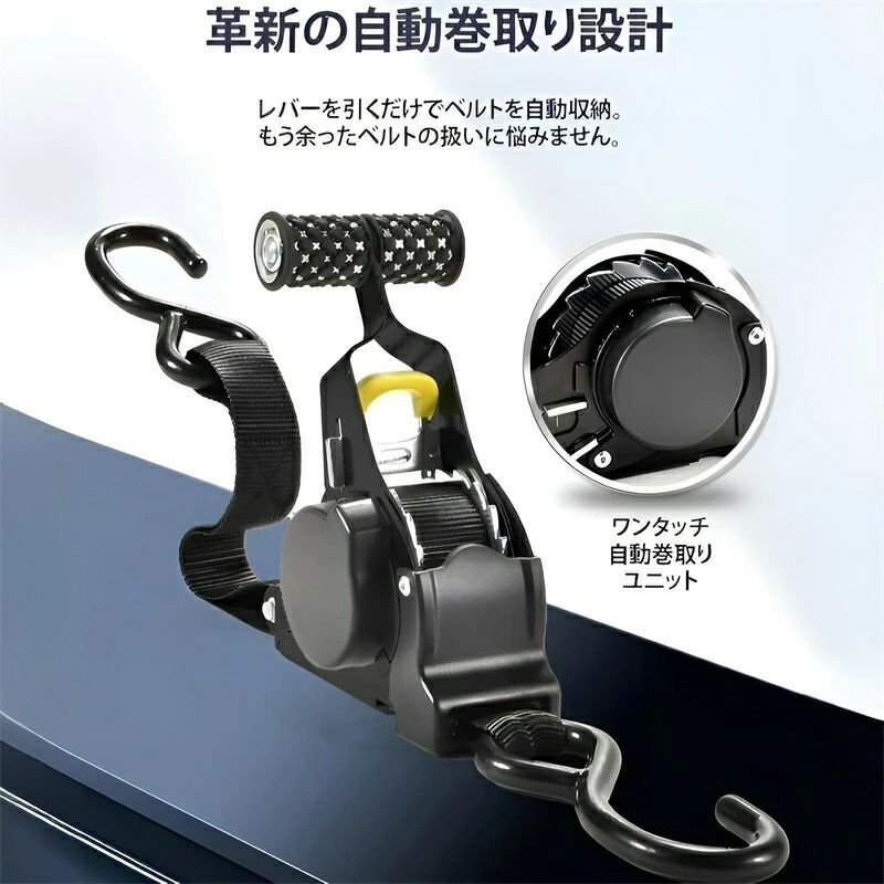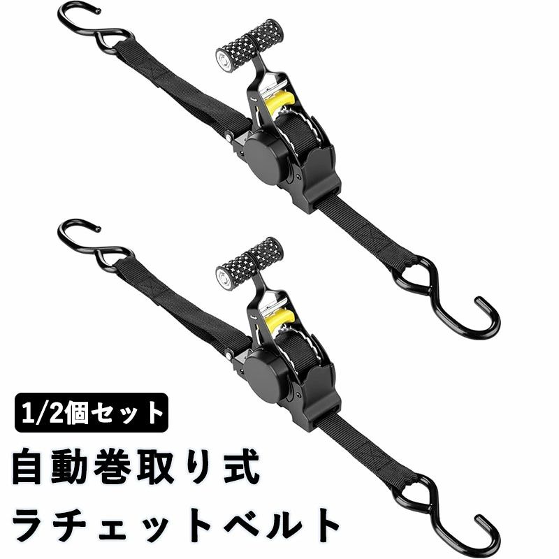 自動巻取り式 ラチェットベルト ラッシングベルト ラチェット式 1 2本セットタイダウンベルト 多用途 引越し トラック 車載用 バイ 運搬