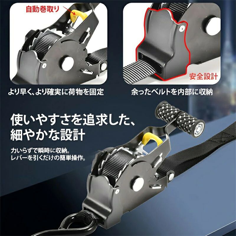 自動巻取り式 ラチェットベルト ラッシ 1個セット 2個セット
