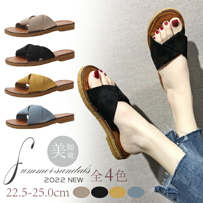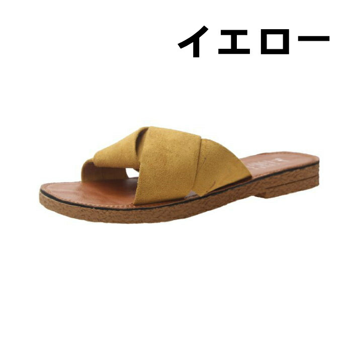 部分 フラットサンダル ビーチサンダル クロスベルト ぺたんこスリッパ 可愛い レディース 靴 シューズトレンド 歩きやすい ローヒール 涼しい 蒸れない おしゃれ 夏サンダル 美脚 イエロー 夏用