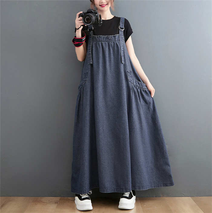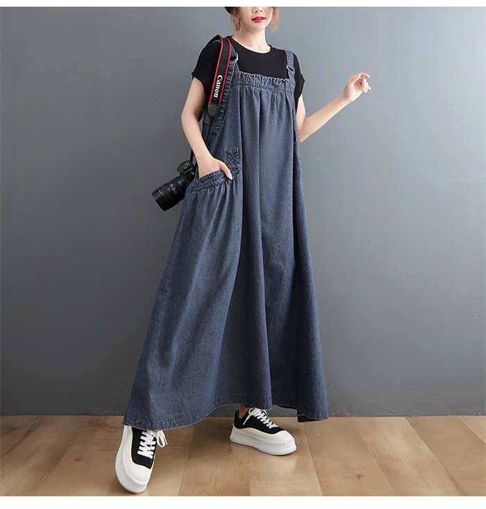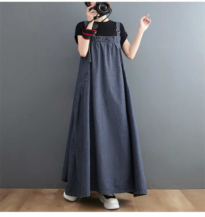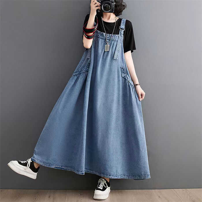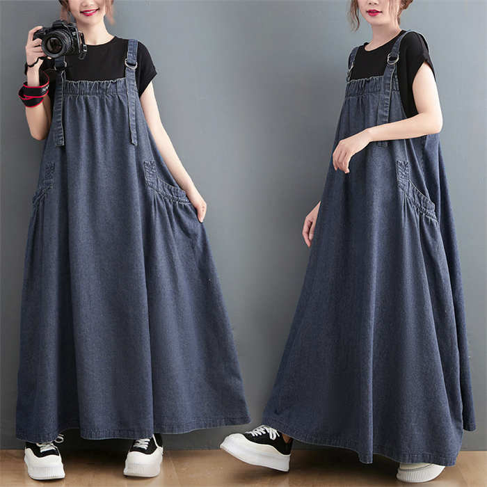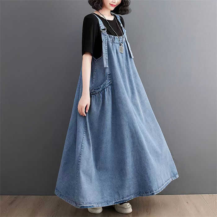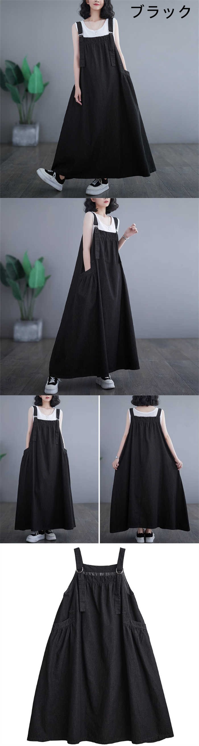 ジャンパー スカート サロペット ワンピース ロング デニム 春 夏 秋 レディース キャミワンピース オールインワン ジャンパーワンピース おしゃれ ゆったり ノースリーブ 体型カバー