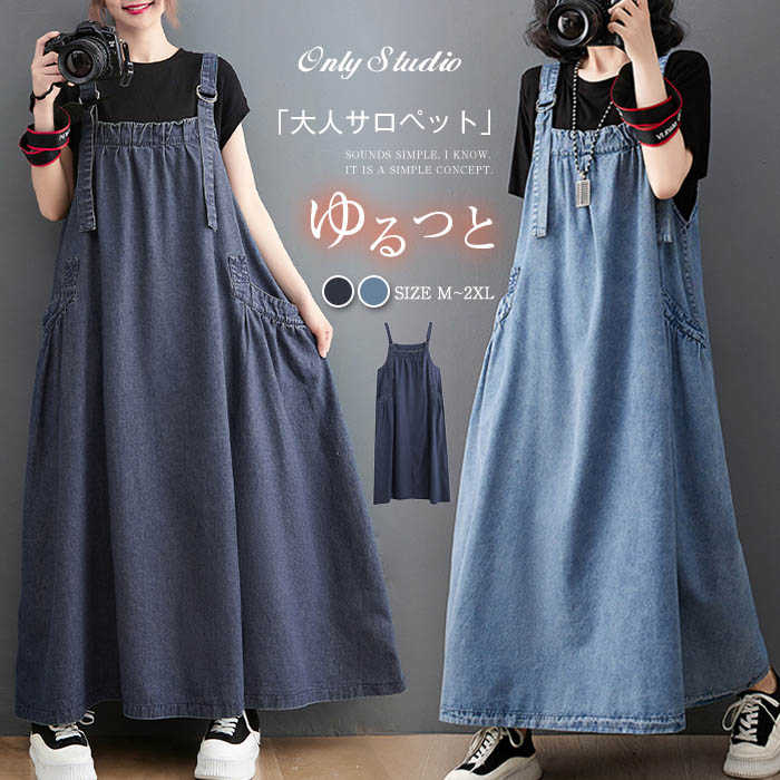 ジャンパー スカート サロペット ワン ワンピース 続々登場 ダークブルー ライトブルー ブラック M L XL 2XL