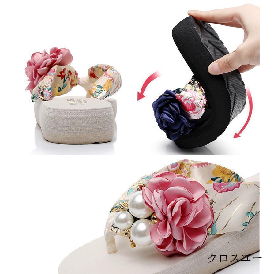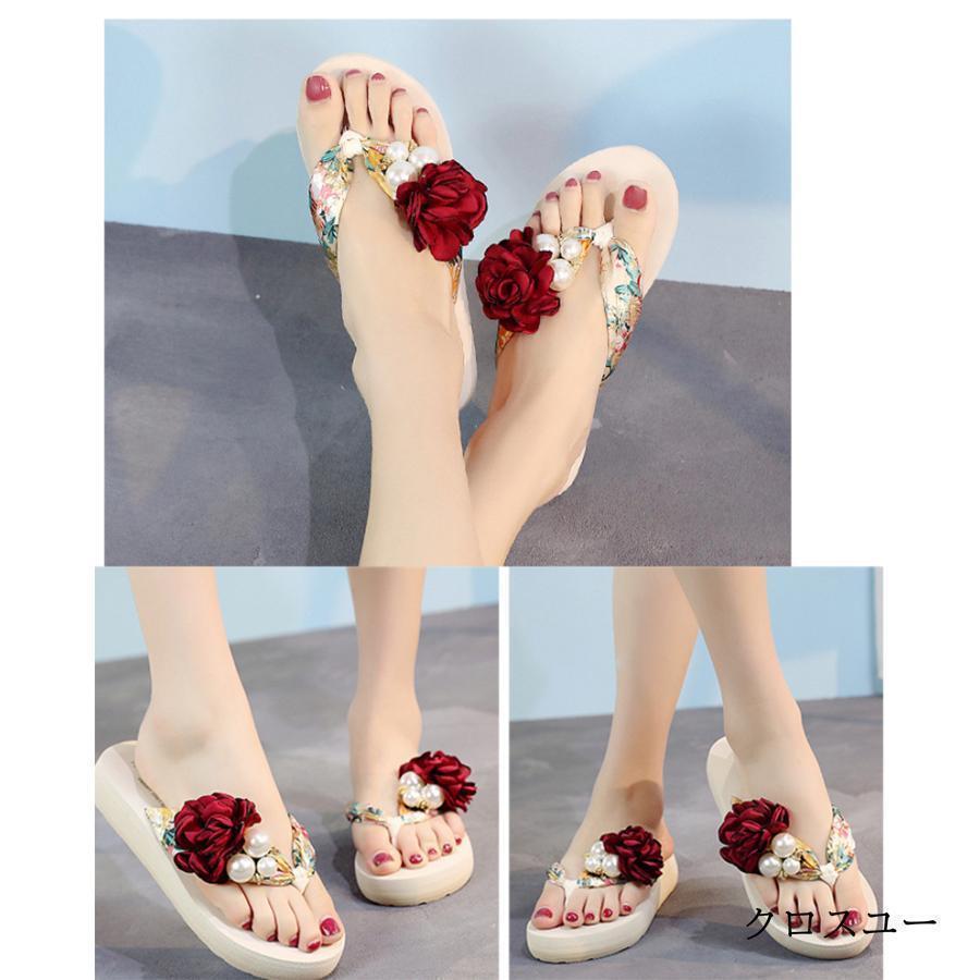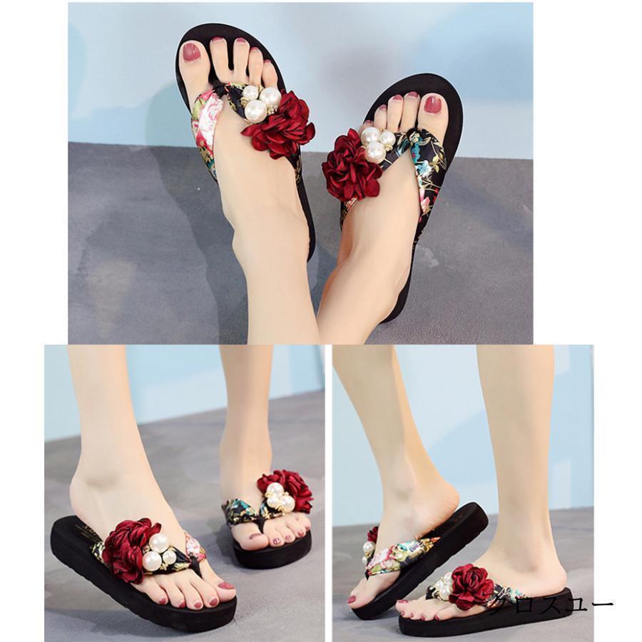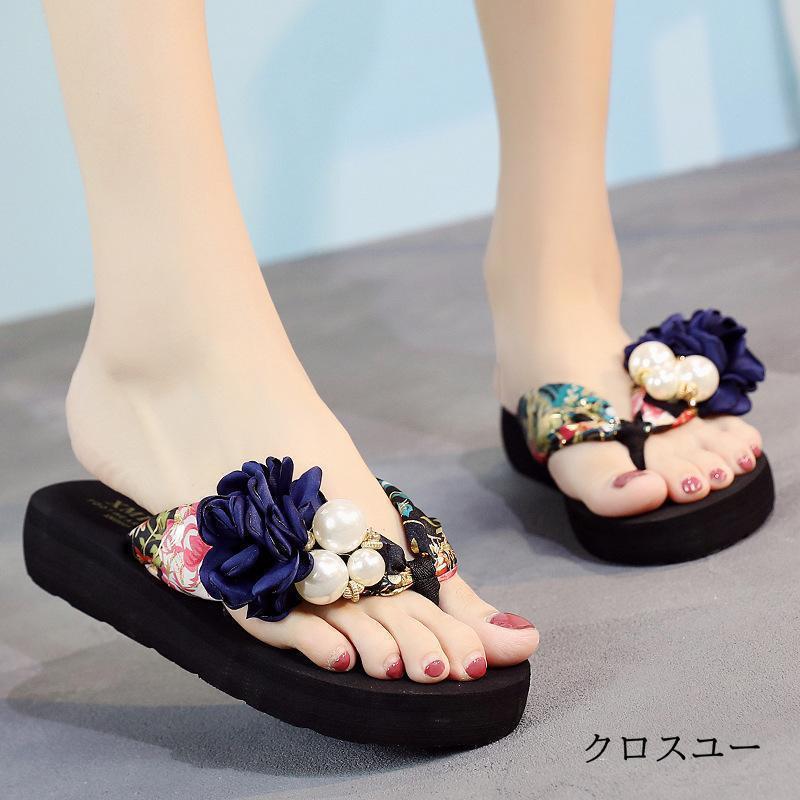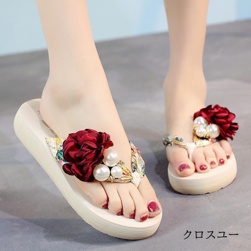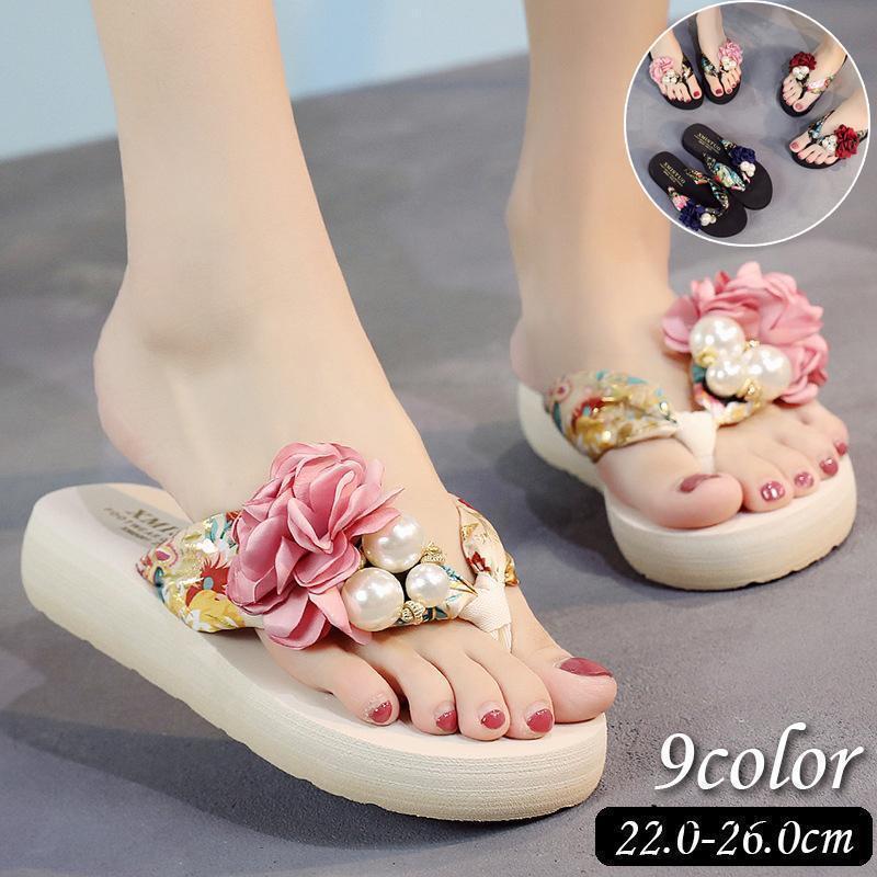 サンダル ビーチサンダル トングサンダル レディース ビーサン 花 フラワー コサージュ フェイクパール カラフル 中底 プール ビーチ デート 海