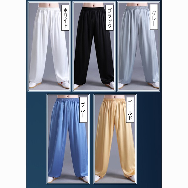 サテン 太極拳パンツ レディース メン スポーツ アウトドア 続々入荷中 ホワイト ブラック グレー ブルー ゴールド S M L XL XXL 3XL