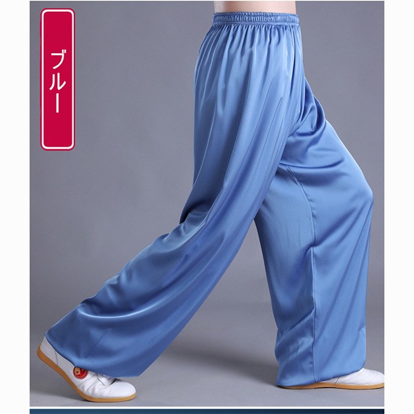 サテン 太極拳パンツ レディース メンズ 大人 男女兼用 太極拳ズボン カンフーパンツ 光沢感あり 動きやすい 柔らか 太極拳 ウェア 服 ズボン 表演服 練習着 武術 カンフー服 ストレッチ ヨガウェア 演出服 団体服 白 黒 ブルー ゴールド イエロー グレー s m l xl xxl xxxl