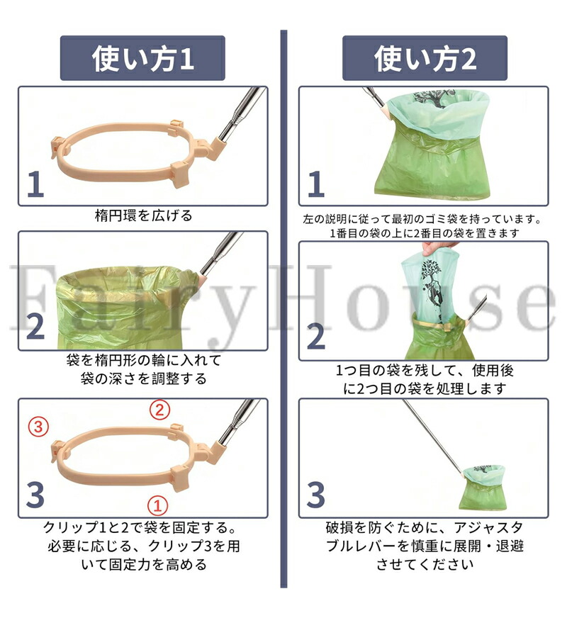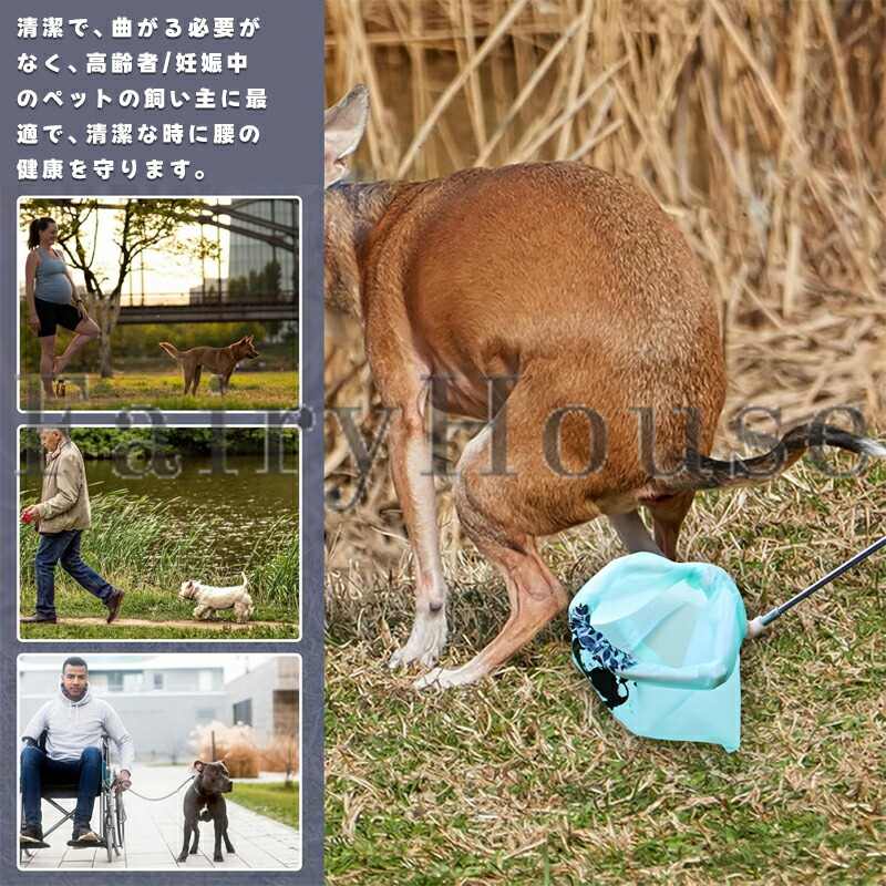 お手入れ簡単ビニール袋を装着してうんちをキャッチ、袋を結んでそのまま処分可能。水洗いするだけで清潔を保て、手や地面を汚さず衛生的に使用できます。