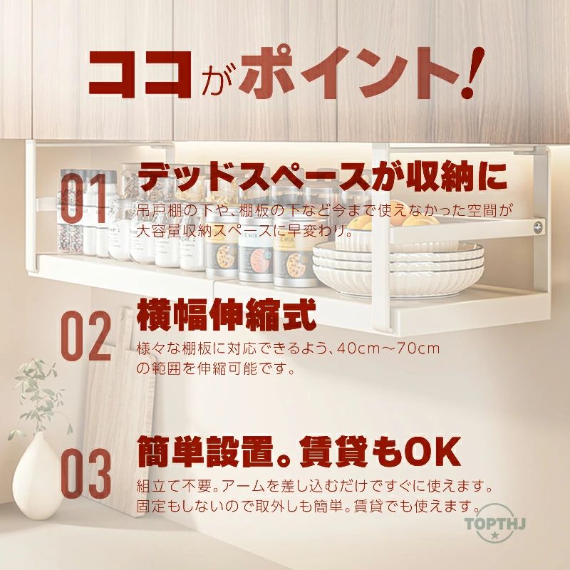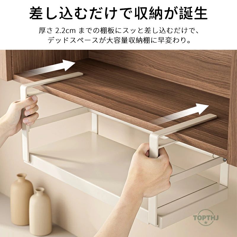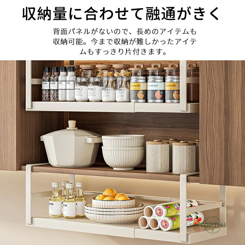 吊り戸棚下収納ラック 伸縮ワイド 戸棚下 ラック キッチン収納 吊り下げ棚 省スペース ホワイト ブラック 差し込み つり戸棚ストッカー 省スペース 洗面所 クローゼット吊り下げ式収納 キッチンラック