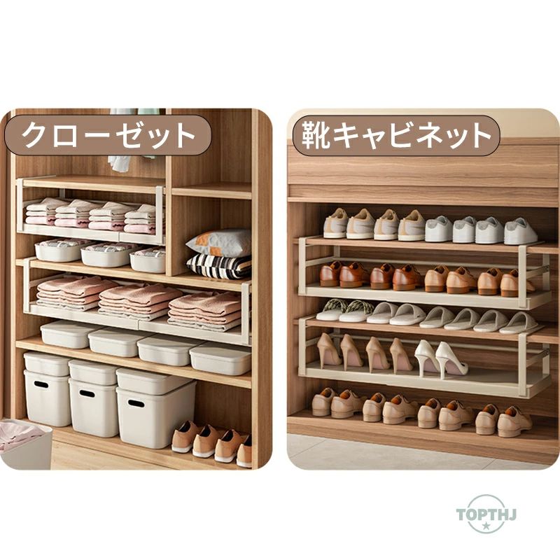 収納物に応じて横幅を45~63cmの間で自由に調整可能な吊り下げラック。さまざまな収納スペースにすっきりと設置でき、空間を有効活用します。
