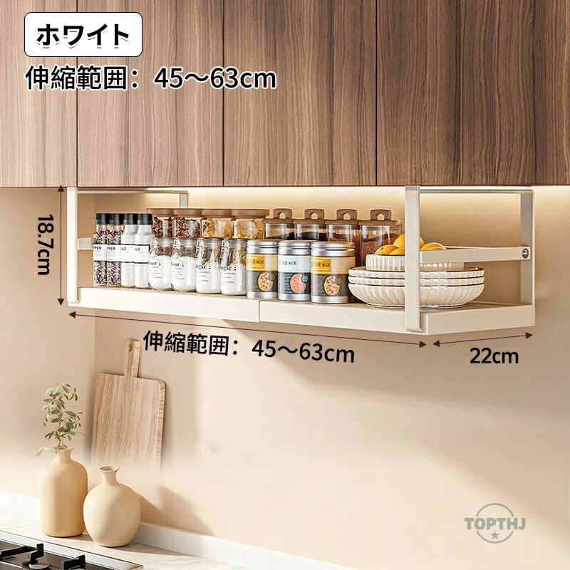 吊り戸棚下収納ラック 伸縮ワイド 戸棚 ブラック ホワイト 伸縮範囲:27~45cm 伸縮範囲:45~63cm
