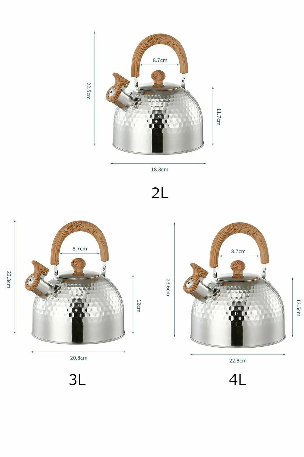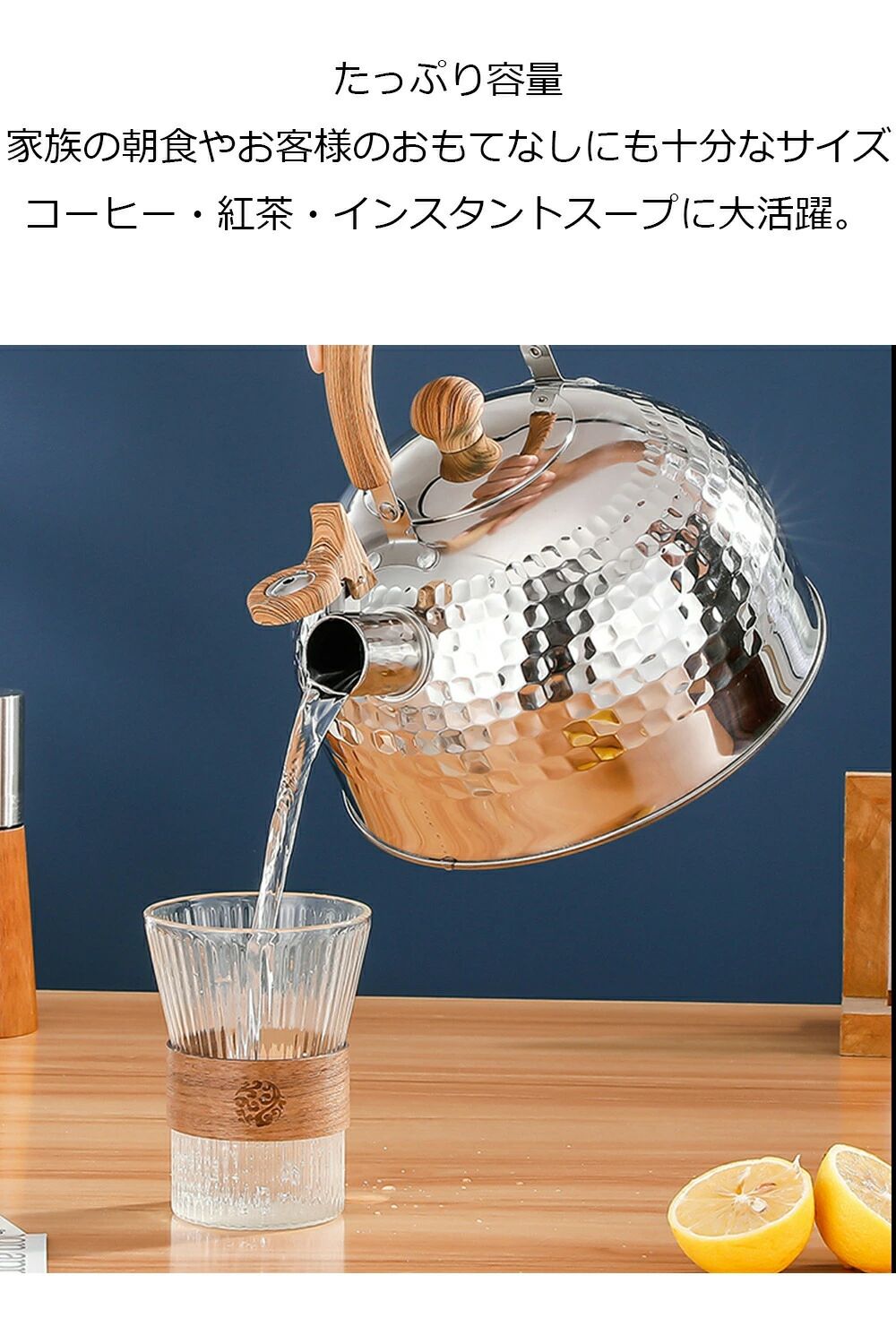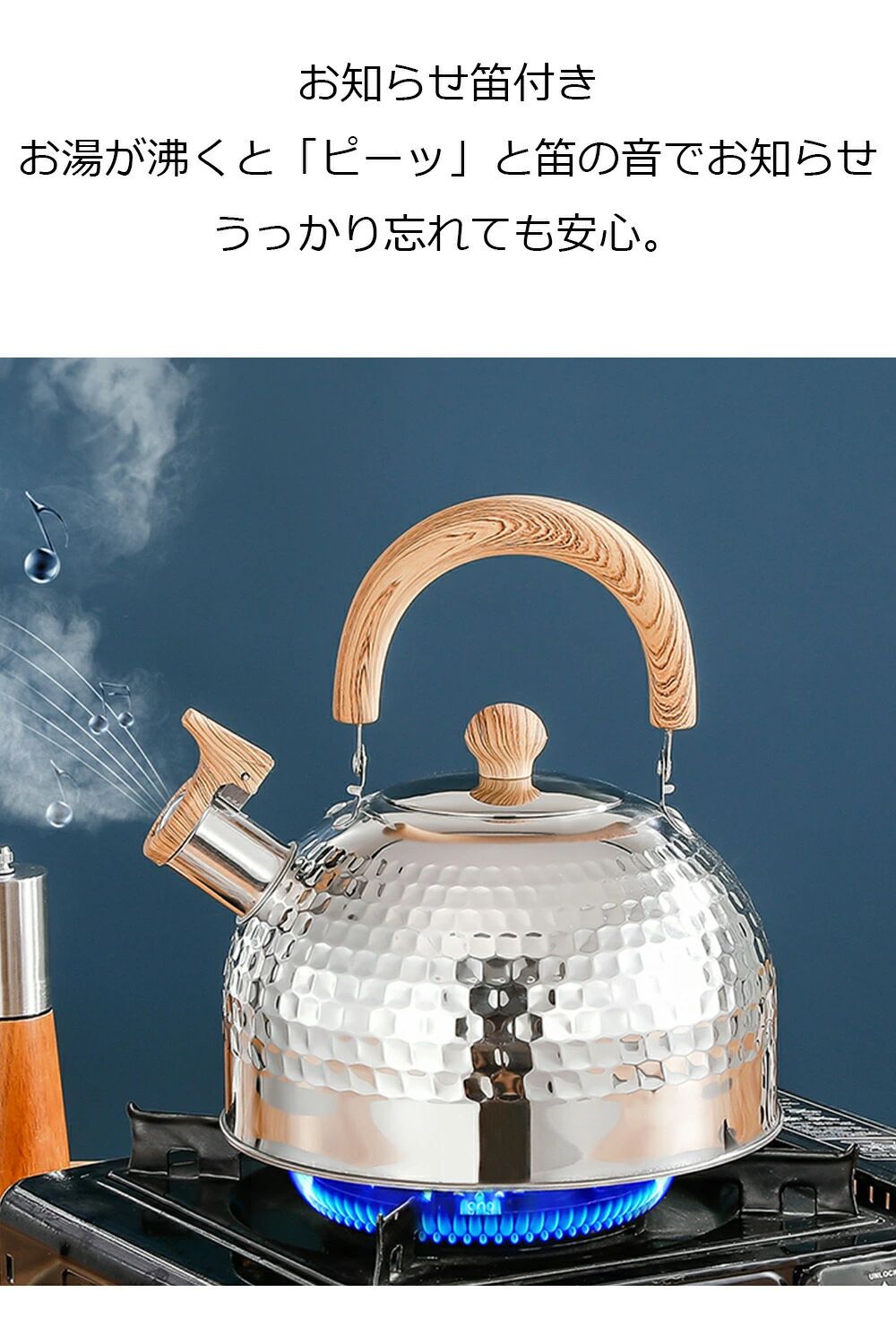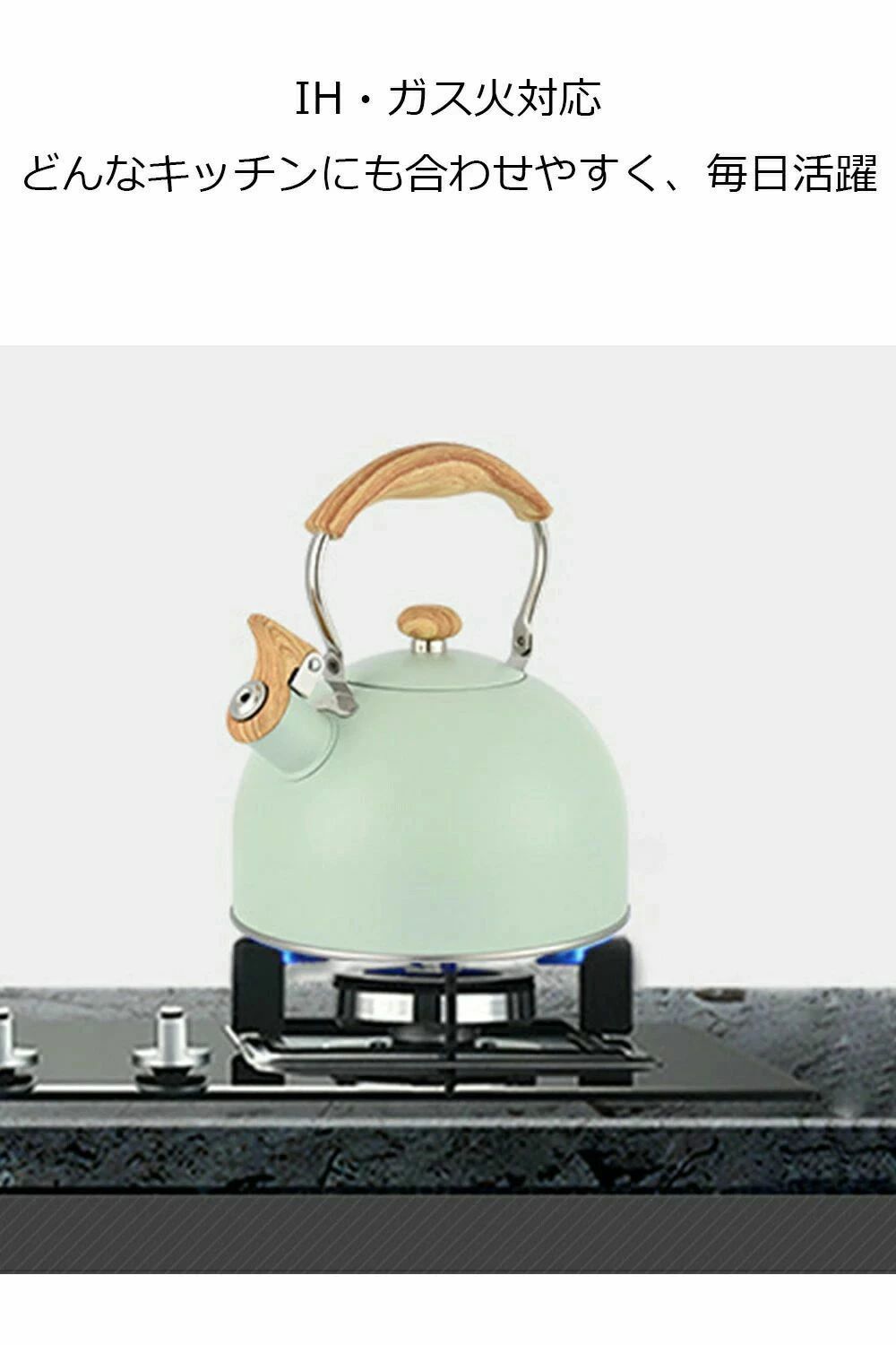 キッ おしゃれデザイン 断熱ハンドル 直火OK ガス火対応 IH対応 広口タイプ 大容量 4L 3L 笛吹きケトル ステンレス製 や 2L