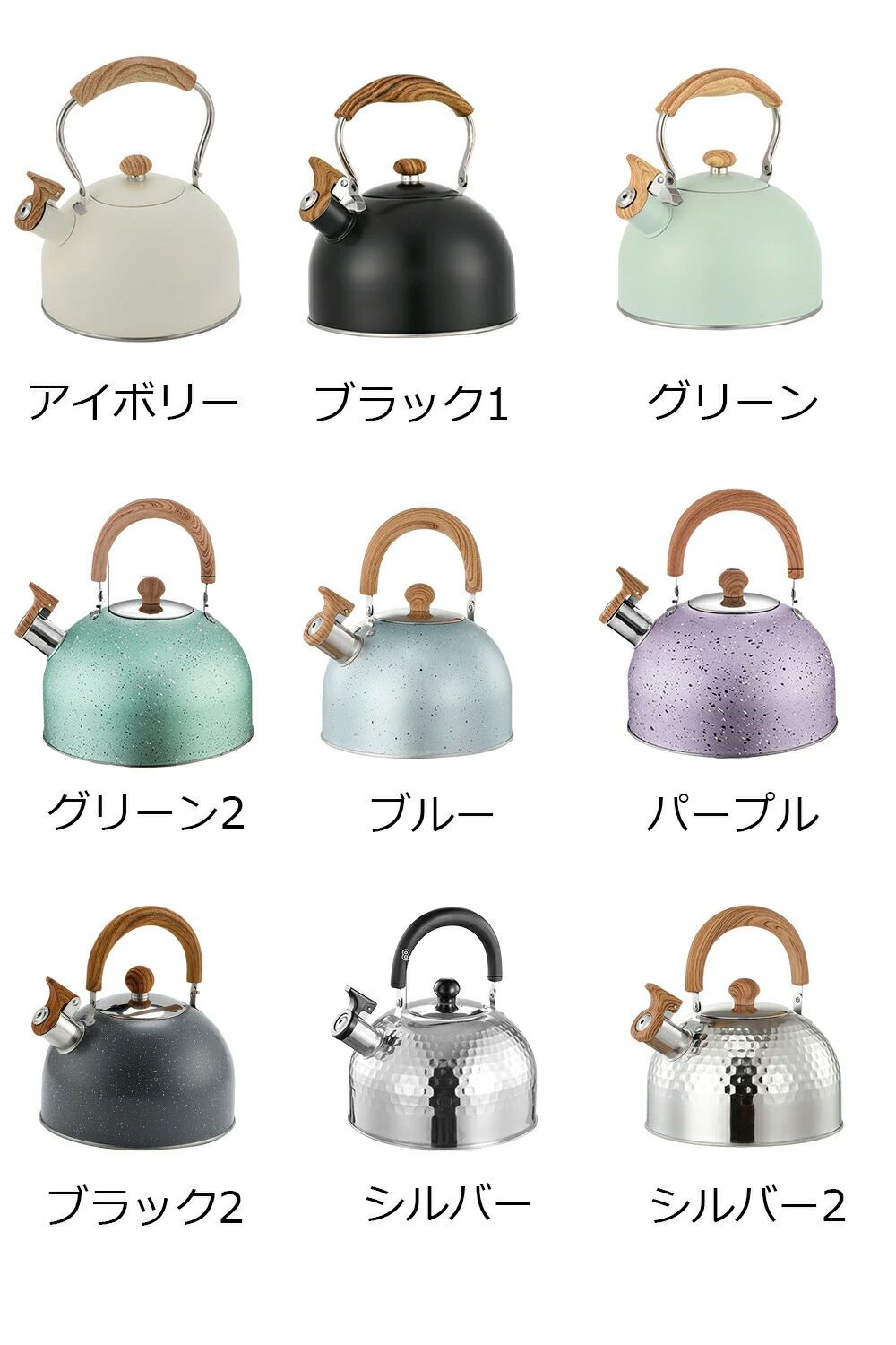 キッ おしゃれデザイン 断熱ハンドル キッチン用品 食器 調理器具 通販 アイボリー ブラック1 ブラック2 グリーン1 グリーン2 ブルー パープル シルバー1 シルバー2 2L 2.5L 3L 4L