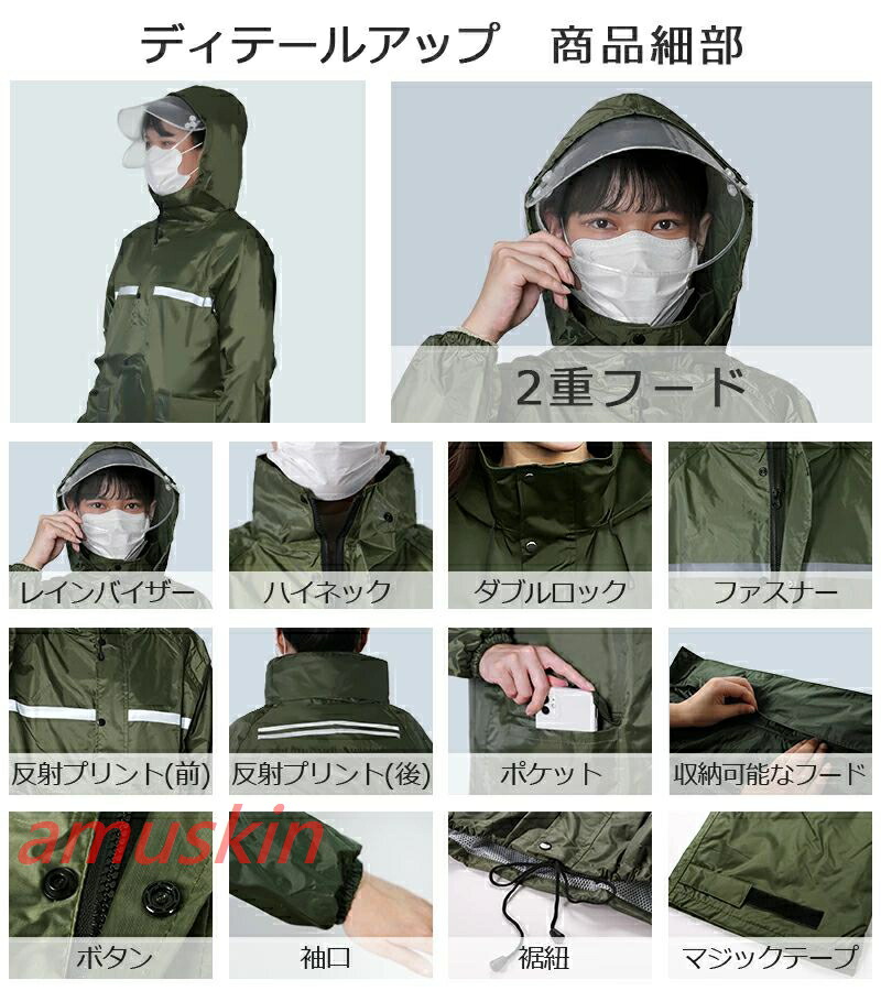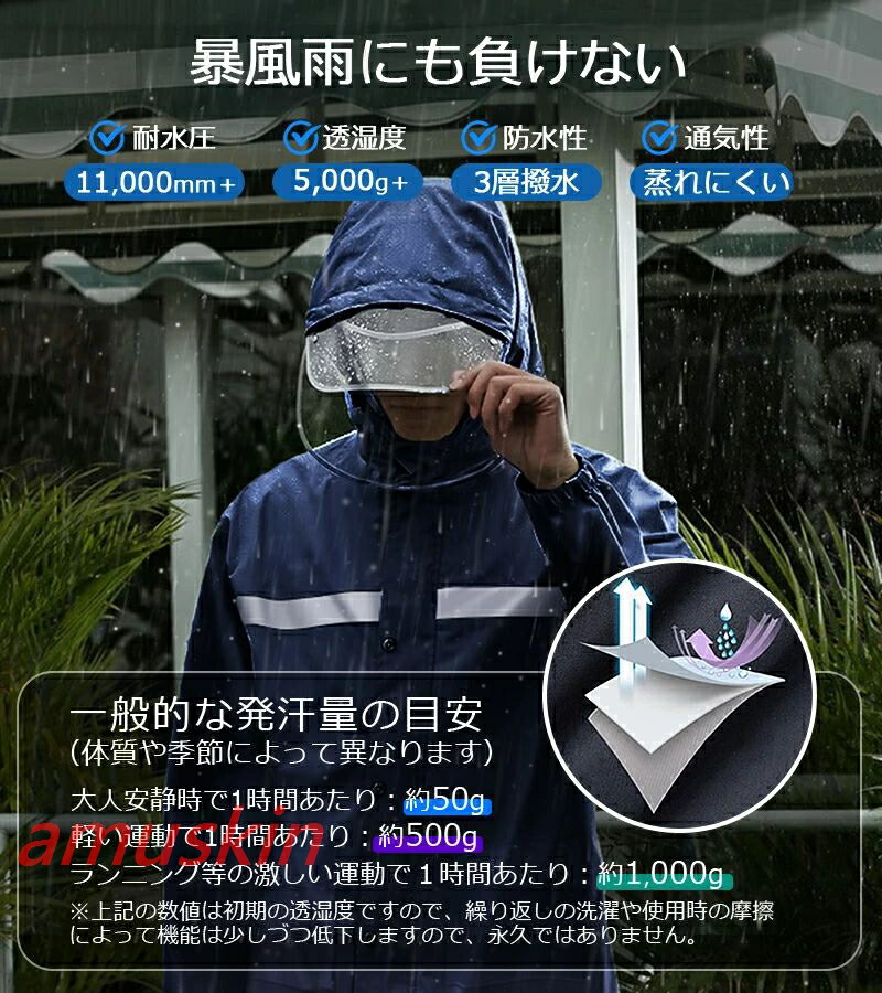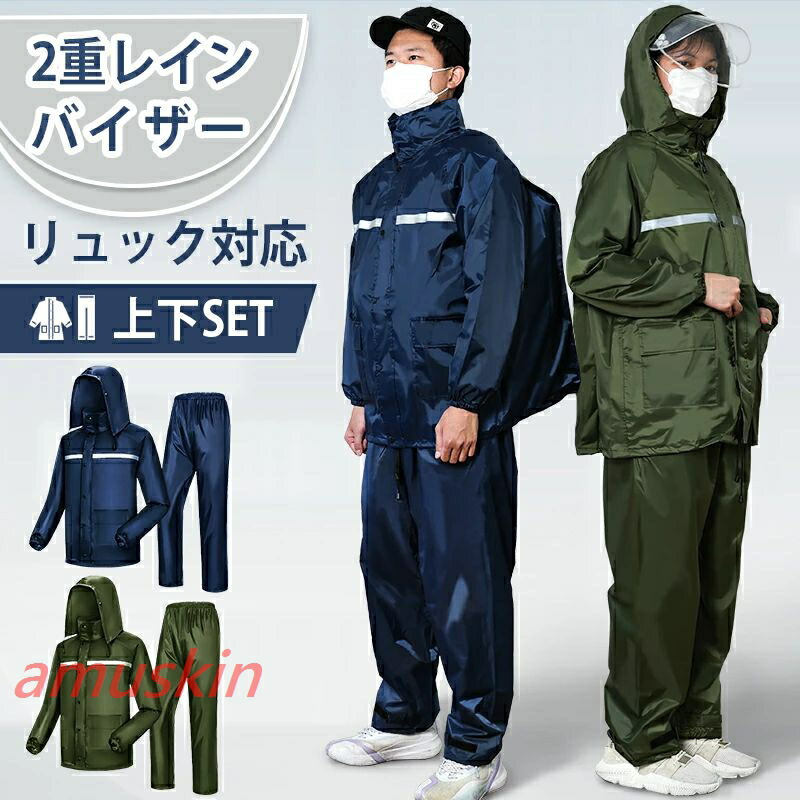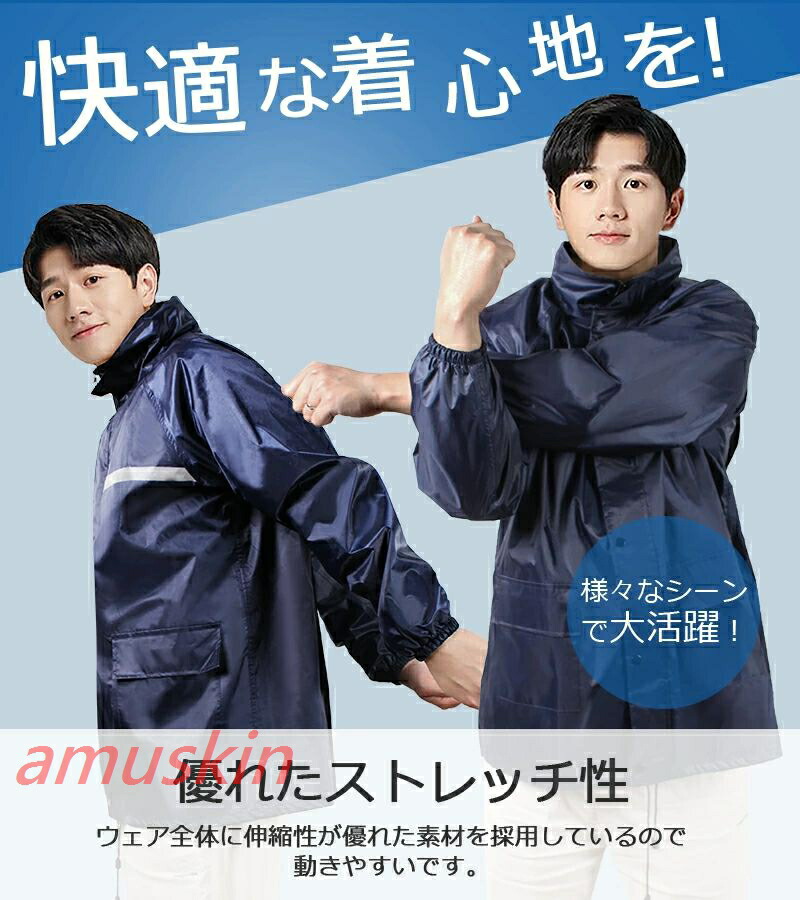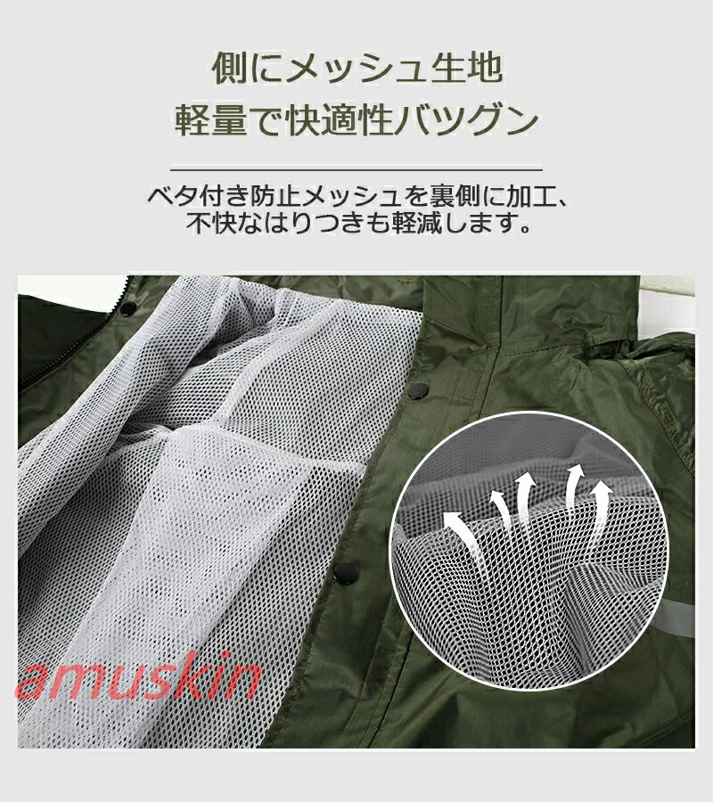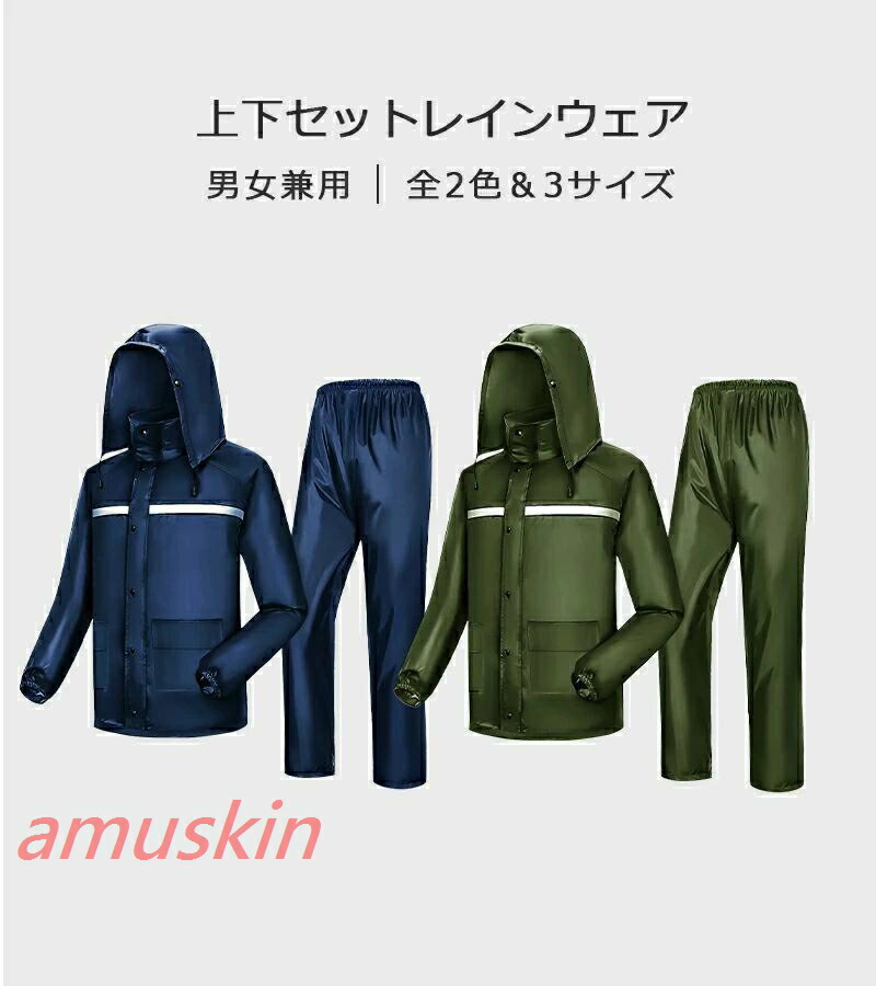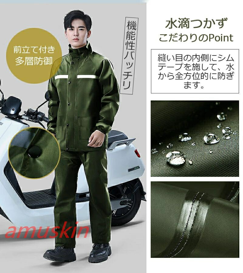 レインウェア 上下セット レインスーツ レインウエア レインコート 新作 ネイビー色 カーキ色 XL 2XL 3XL