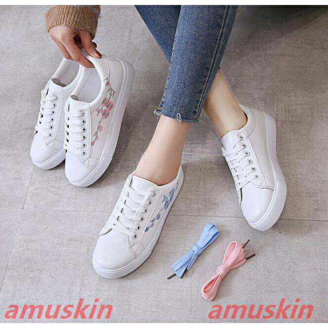 刺繍スニーカー 軽量 花柄 厚底スニー ピンク ブルー 22.5CM 23CM 23.5CM 24CM 24.5CM 25CM