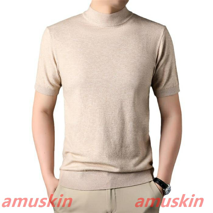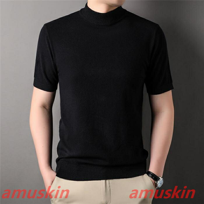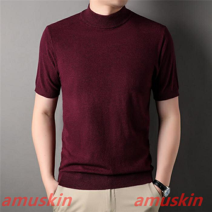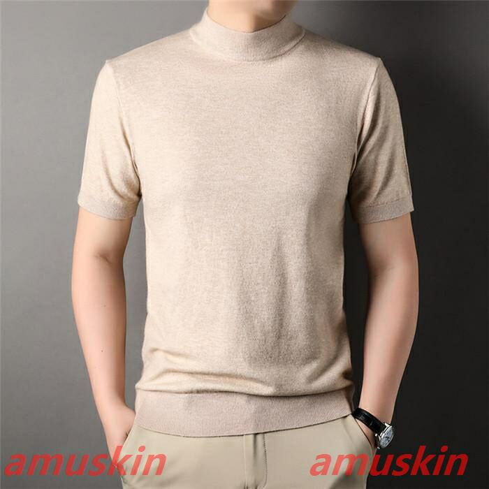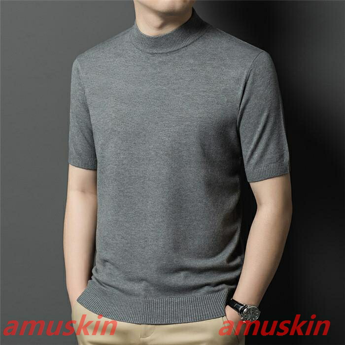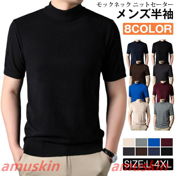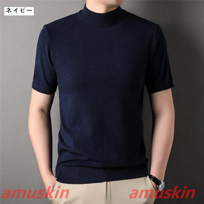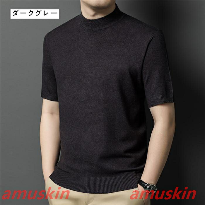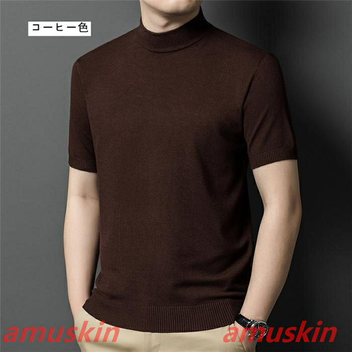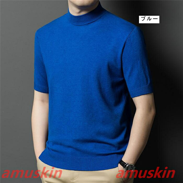 モックネック ニットセーター メンズ半袖 サマーニット サマーセーター tシャツ ニットソー ハイネック ゴルフウェア 半袖ニット 無地 ニット ビジネス オフィス ゴルフ 普段着