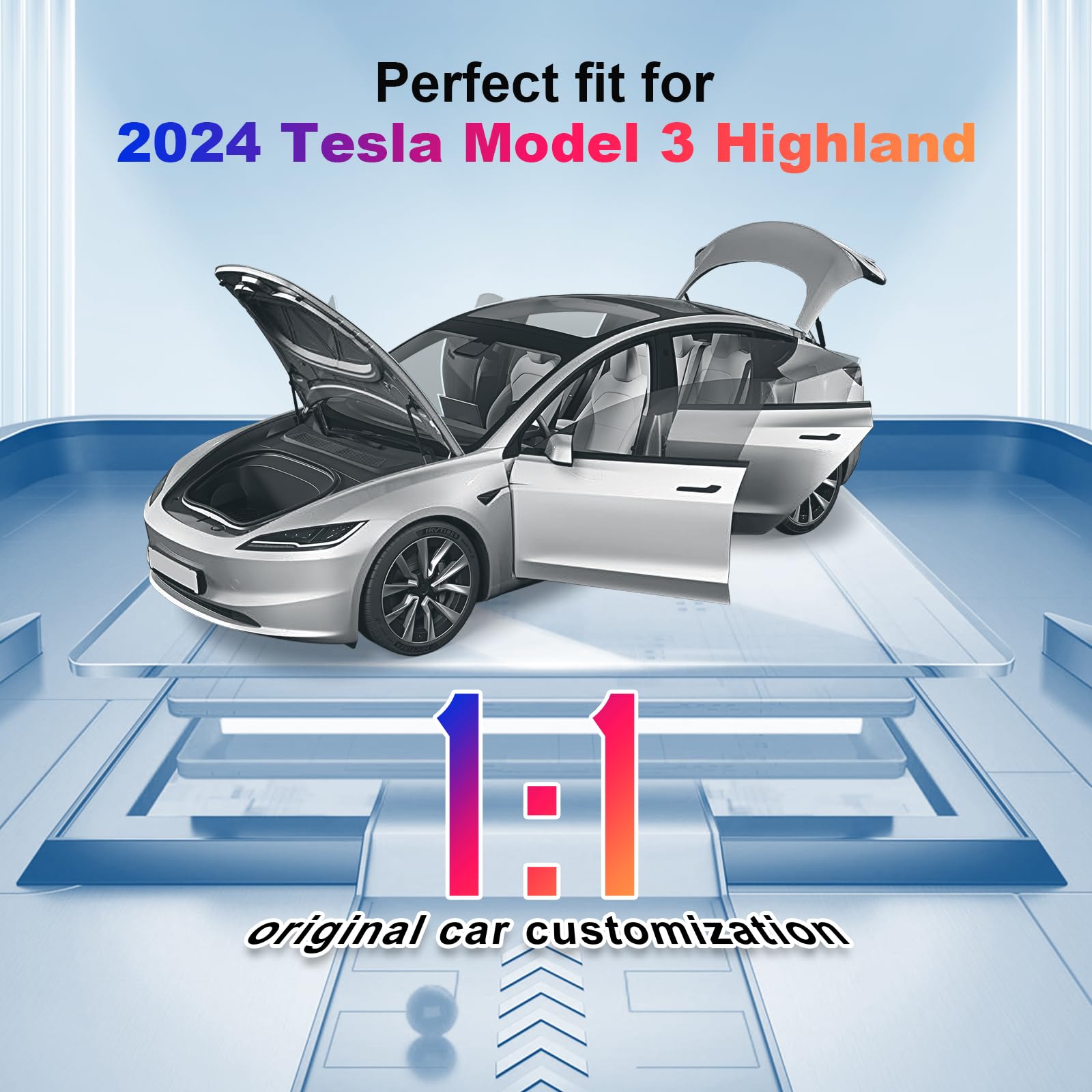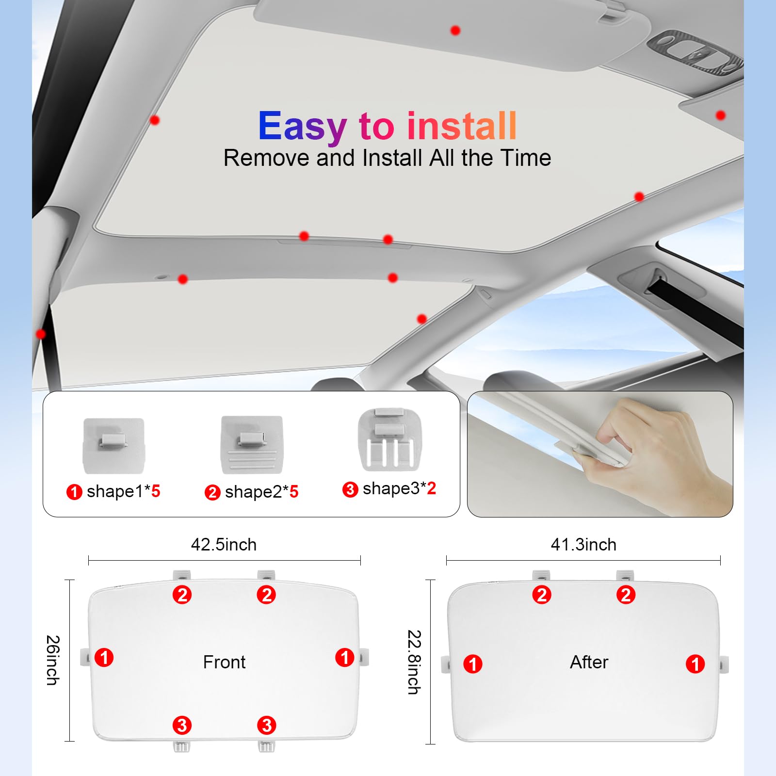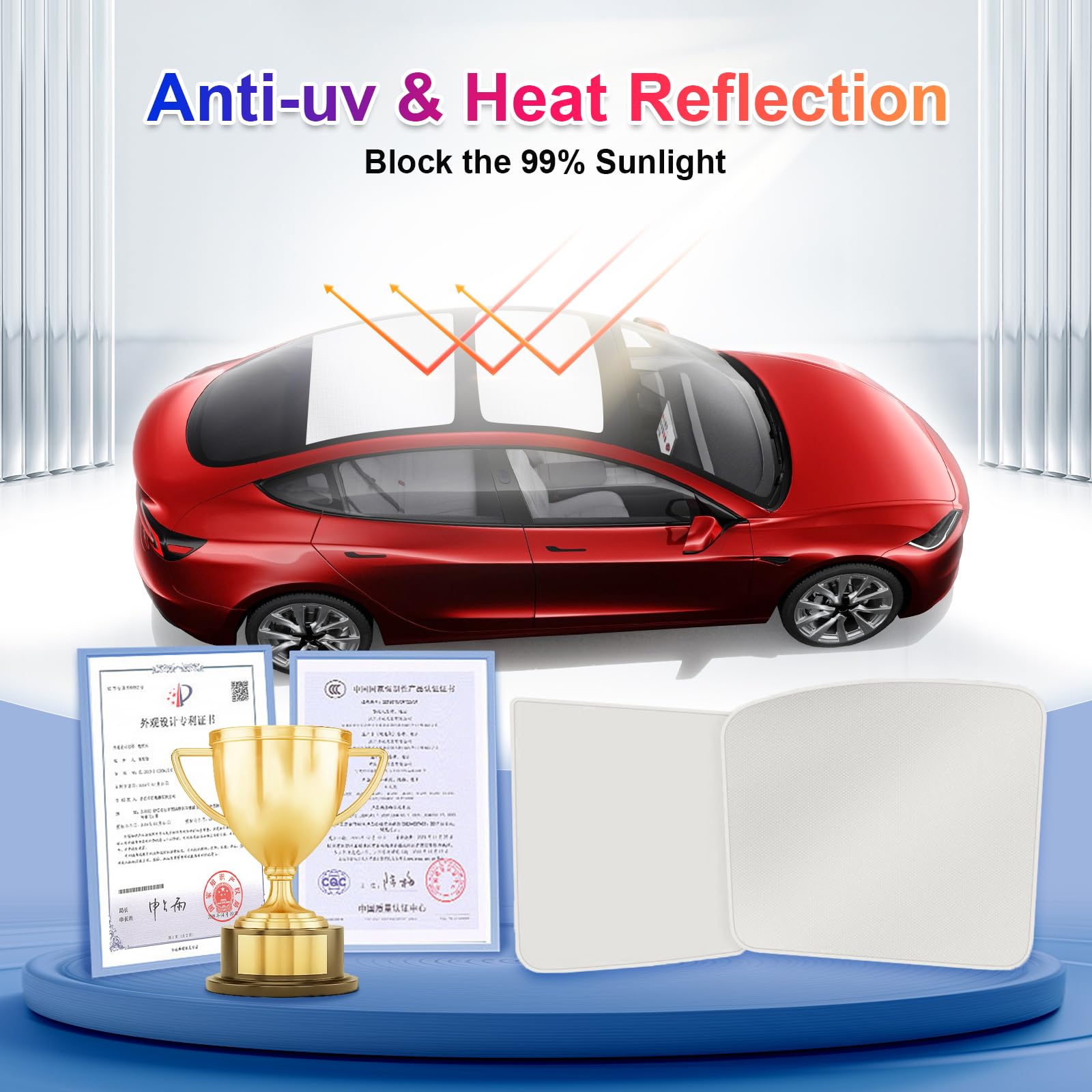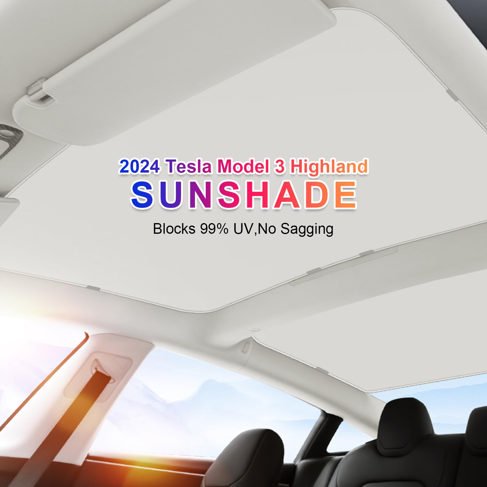 ルーフサンシェード 2024年 Tesla Model 3 Highland用 紫外線を効果的にブロック 垂れ下がらない折りたたみ式サンシェード 2024年テスラモデル3アク ガラスルーフサンシェード