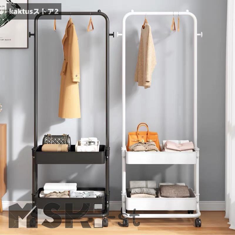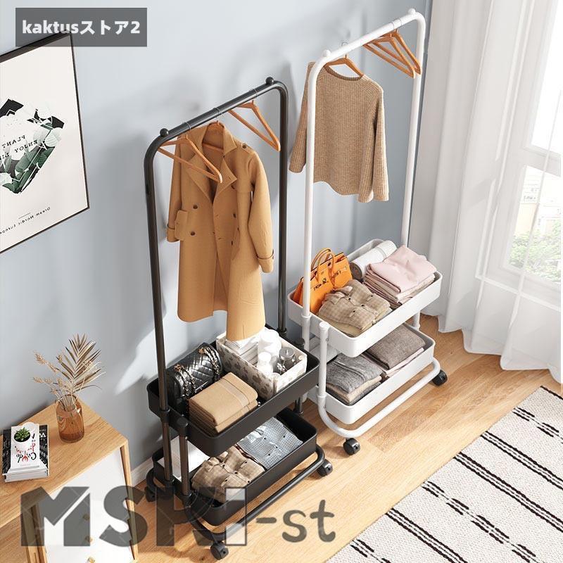 ハンガーラック おしゃれ 棚付き キャスター付き トローリーハンガー バスケット コートハンガー バスケット付き 子供 玄関 収納 カゴ
