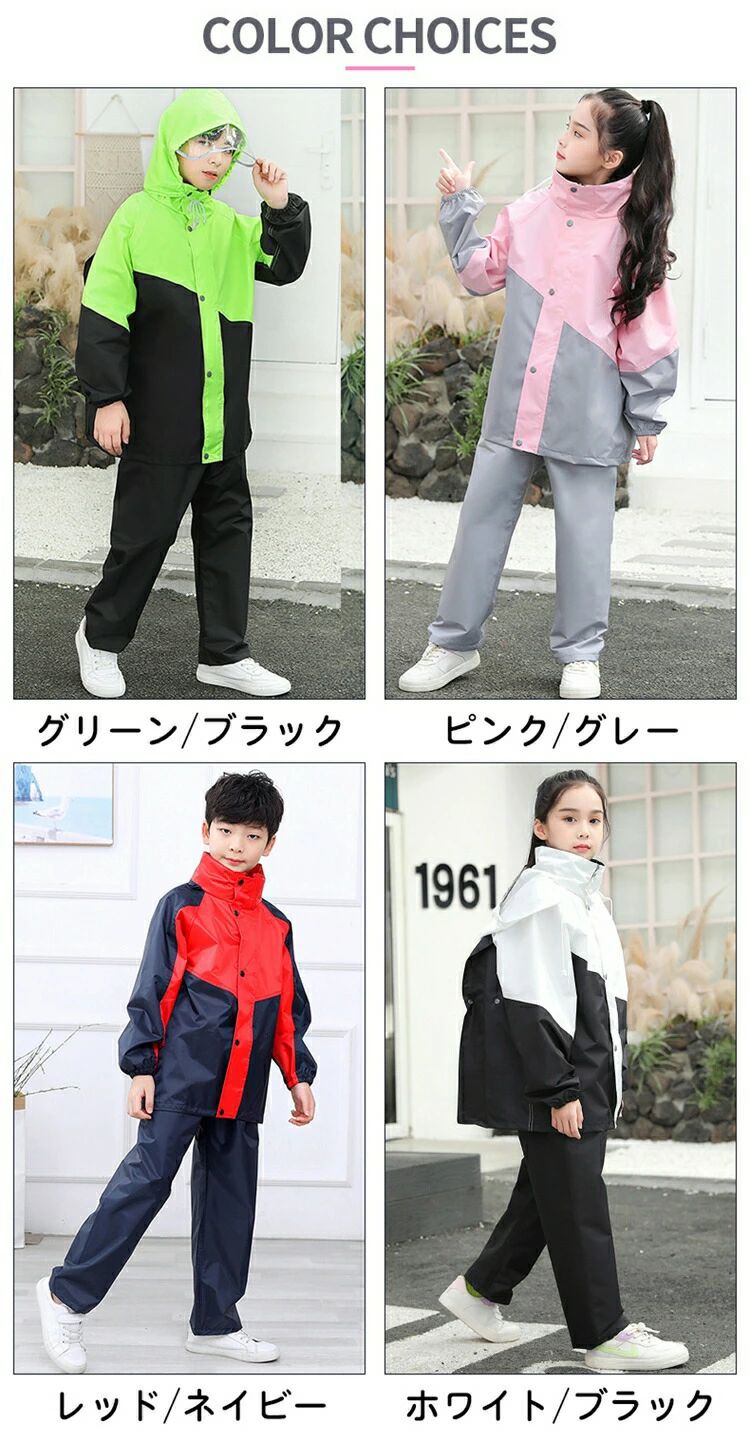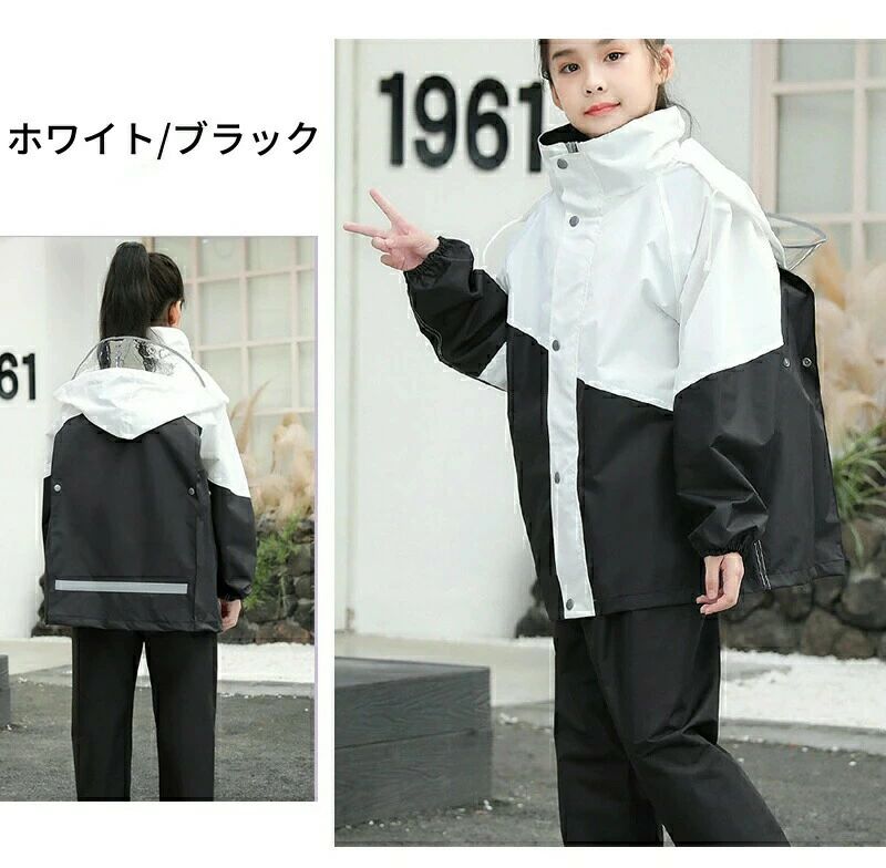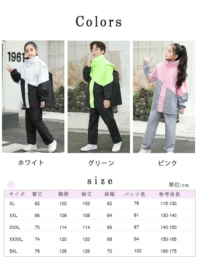 レインコート キッズ 上下 子供 小学 ホワイト ブラック ピンク グレー グリーン ブラック XL(115-130CM) 2XL(130-140CM) 3XL(140-150CM) 4XL(150-165)