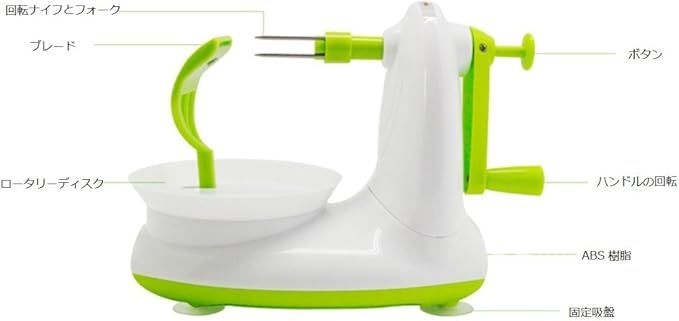 ピーラー フルーツカッター 果物 野菜 手動 吸盤付き じゃがいも皮むき器 回転式 リンゴ皮むき器 リンゴ フルーツピーラー 果物削り キッチン用品