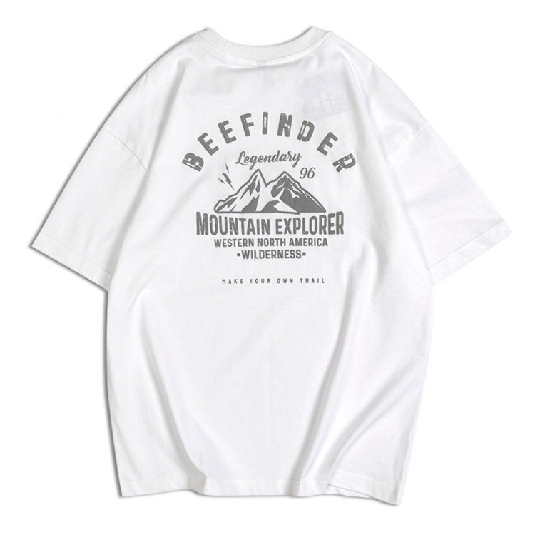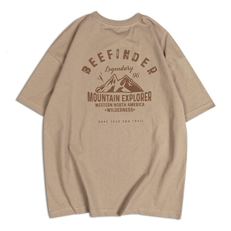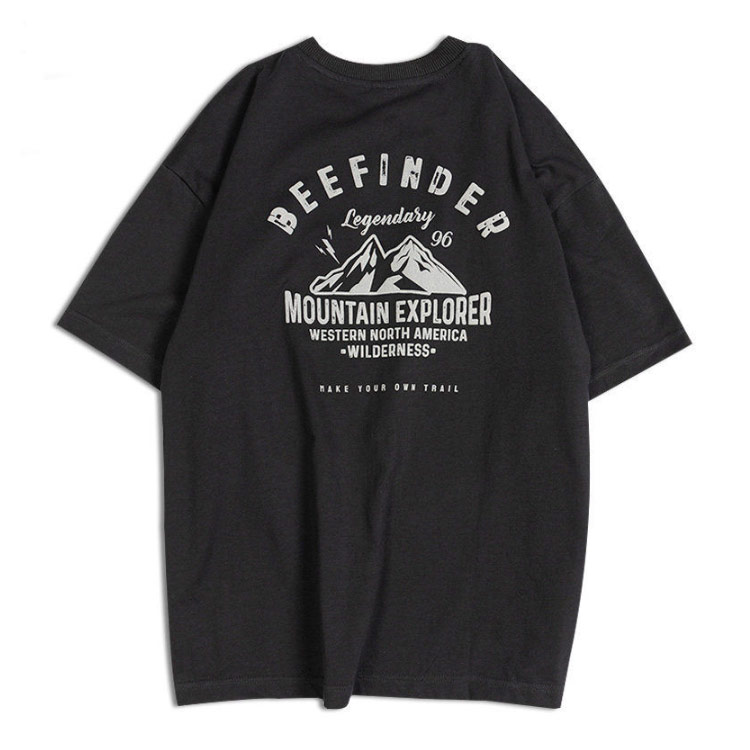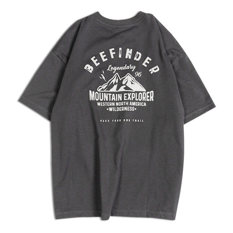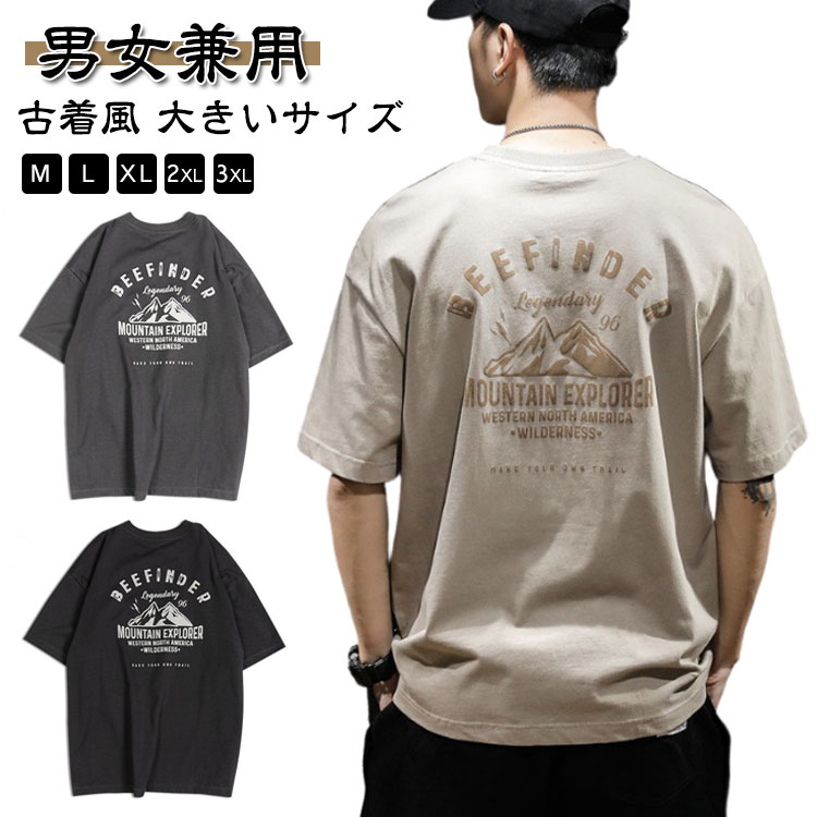 バックプリント 半袖 メンズ レディース カジュアル 丸首 古着風 大きいサイズ トップス レトロ カットソー 山 英字 プリント ストリート アメカジ 大人 黒 白 グレー オーバーサイズ