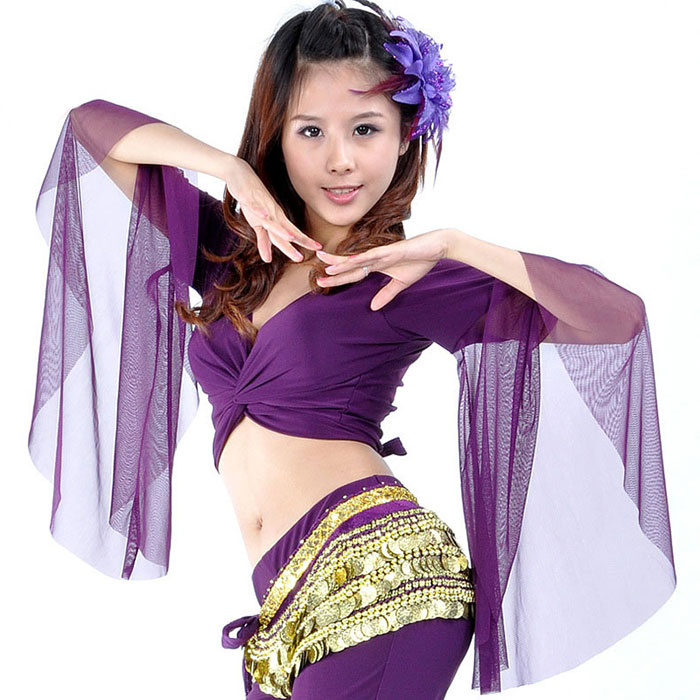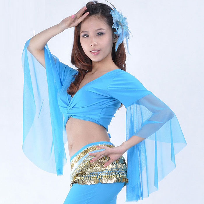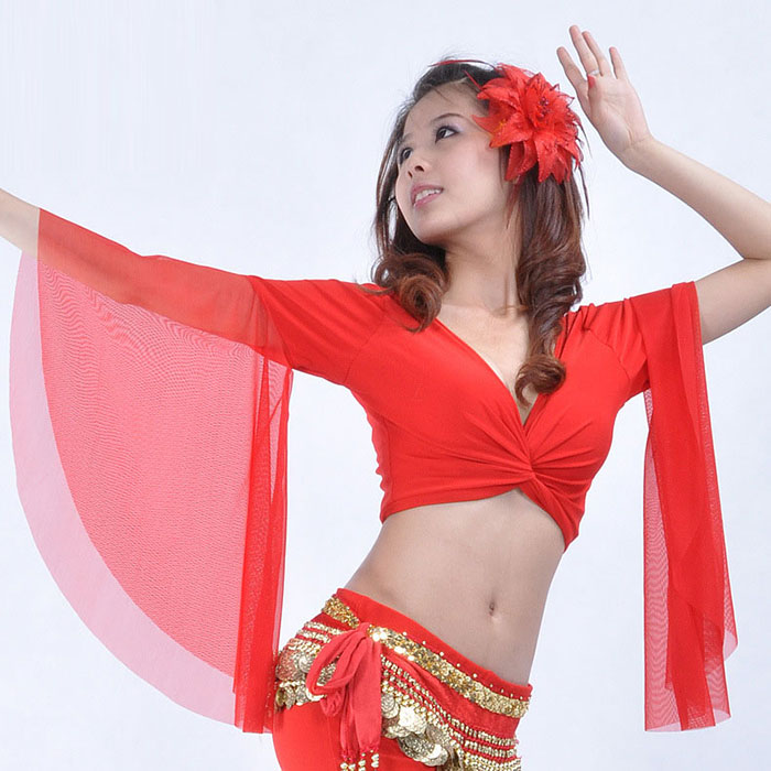 ベリーダンス レッスン着 チョリ トップス フラメンコ衣装 ベリーダンス衣装 社交ダンス 舞台衣装 ステージ衣装 ボレロ 垂れ袖 ブラック レッド ピンク グリ パープル ブルー ホワイト