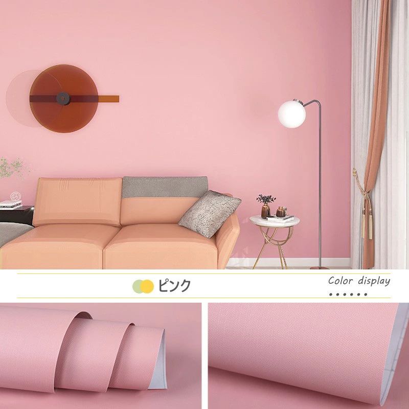 壁紙シール はがせる壁紙 のり不要 シ ブルー グレー イエロー ホワイト ブラック グリーン ピンク オレンジ