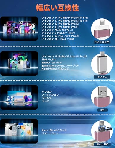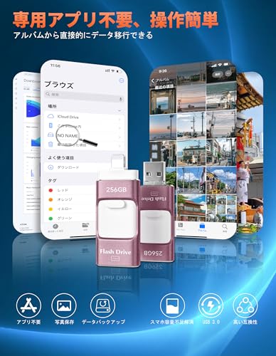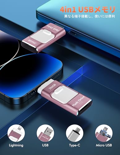 256GB アプリ不要 アルバムから写真保存4in1 iPhone対応 USBメモリ スマホ データ保存 外付け Type-C USB Micro iOS