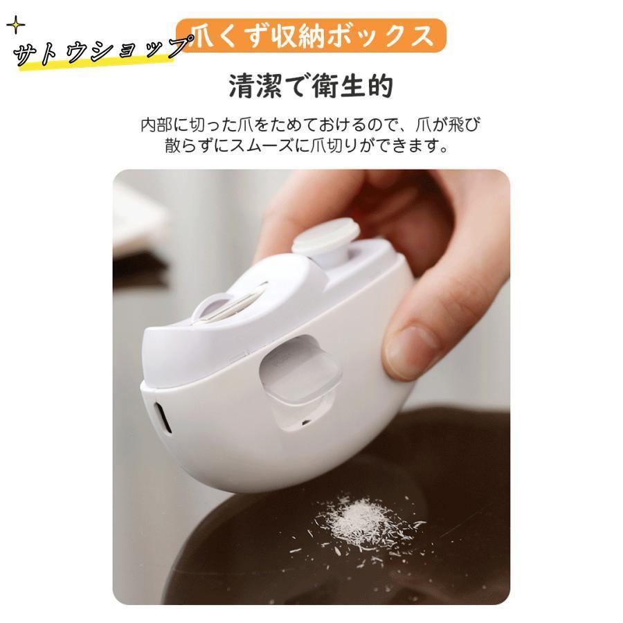 2段階スピード調節可能で好みの速さで爪を整えられます。削った爪は飛び散ってしまうことなく、本体のダストボックスにたまっていくので、カバーを開けて捨てるだけ!