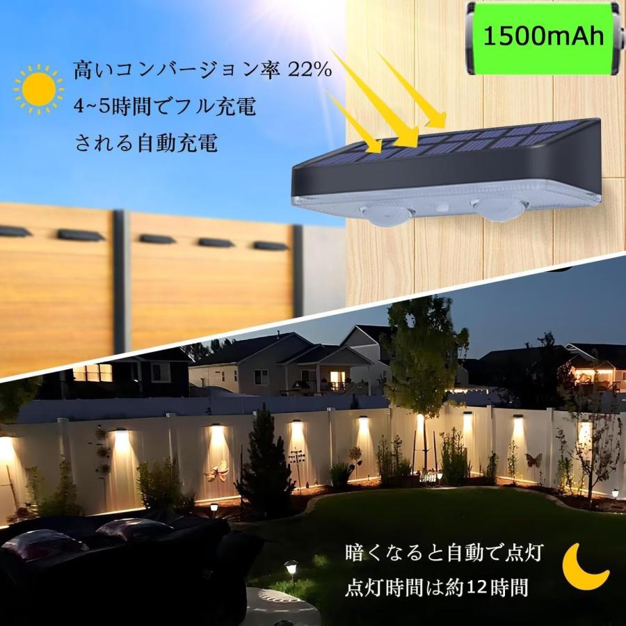 ソーラーライト 屋外 フェンスライト センサーライト 玄関ライト ガーデンライト 1500mAh大容量電池 自動点灯 自動消灯 取付簡単 超高輝度