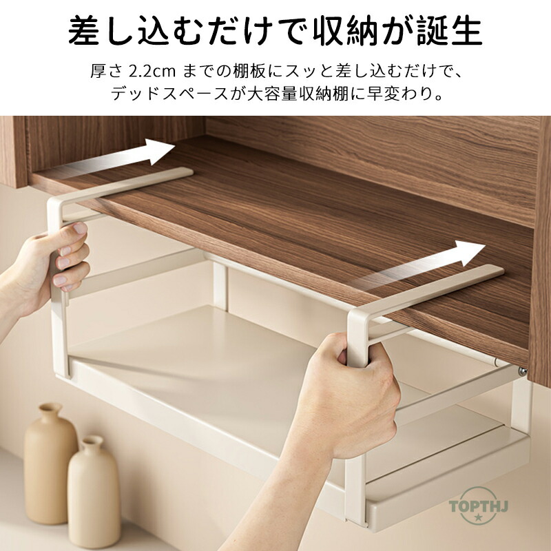 吊り戸棚下収納ラック 伸縮ワイド 戸棚下 ラック キッチン収納 吊り下げ棚 省スペース ホワイト ブラック 差し込み 洗面所 クローゼット吊り下げ式収納 キッチンラック つり戸棚ストッカー