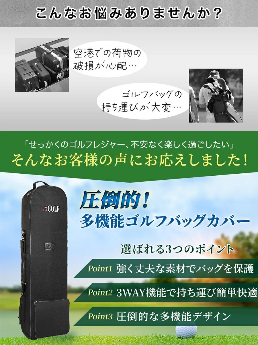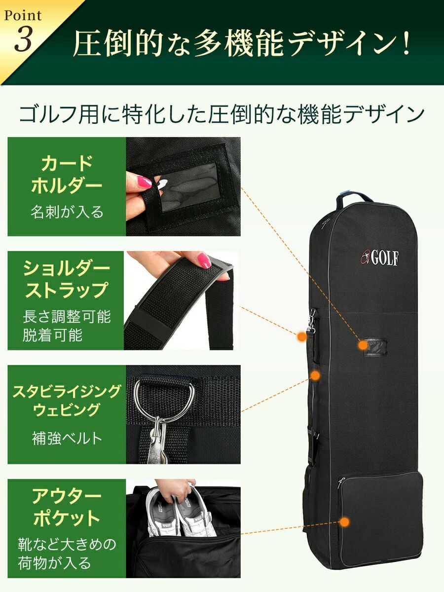国内外の輸送時や移動時にあなたの大切なゴルフバッグを守ります。