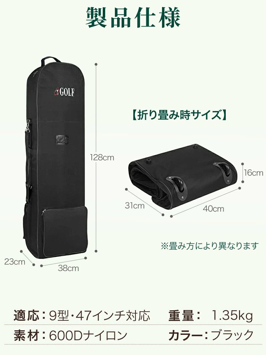 ゴルフバッグ キャディバッグ 防水トラベルカバー 折り畳み軽量仕様 保管用ゴルフ トラベルカバー 飛行機宅急便対応