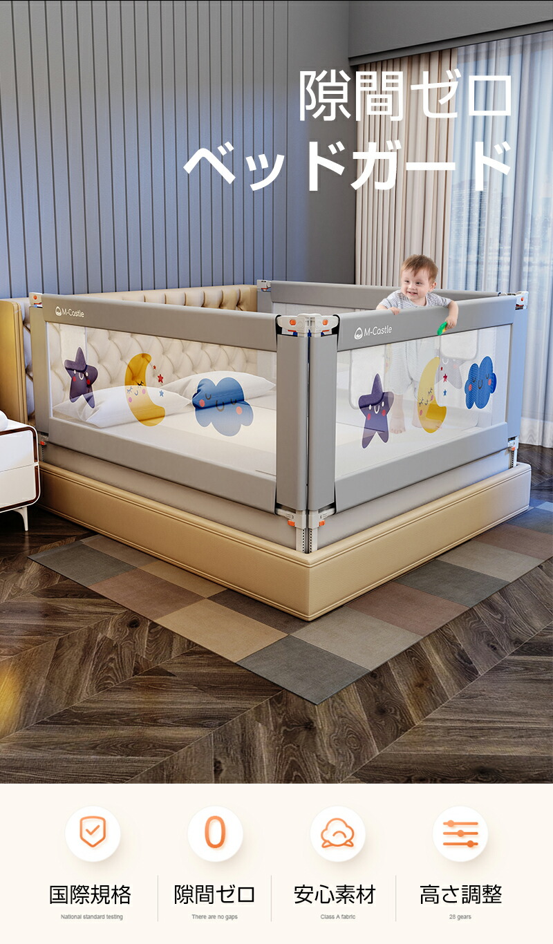 ベッドガード 赤ちゃん 転落防止 ハイタイプ 150cm 180cm 200cm 220cm 大型 子供 高さ調整可能 生地洗濯可能 洗える 取付簡単 ベッドフェンス 布団ズレ防止 安定 メ 落下防止