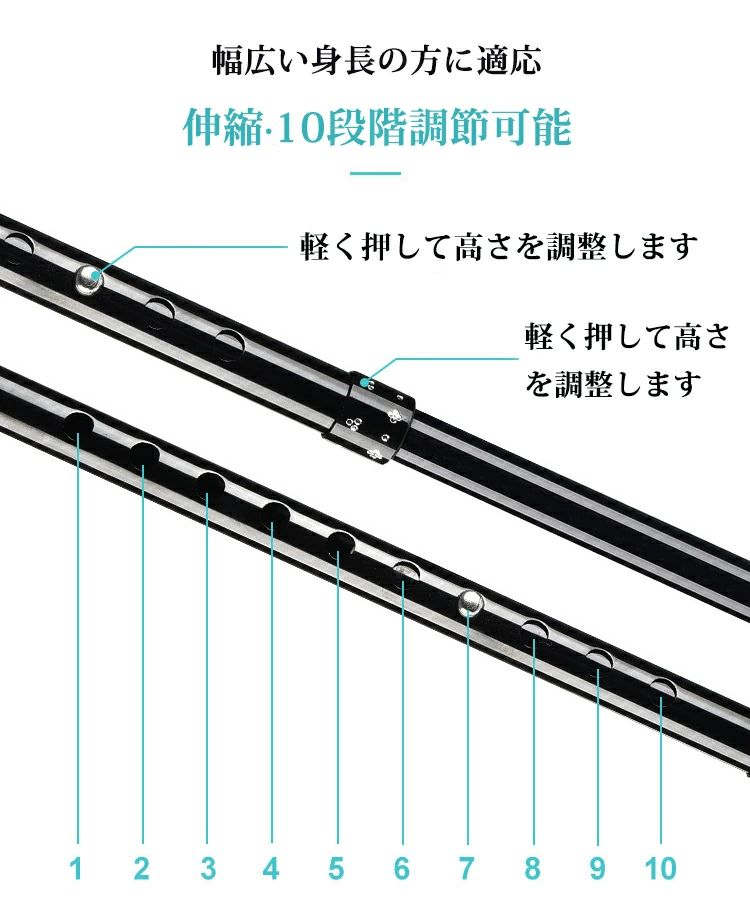 クラッチ杖 伸縮式 松葉杖 肘 付き 杖 肘付き まつばづえ 1本 2本セット 10段階調節可能 ささえ 軽量 介護 歩行補助 立位補助 肘あて ゴム付き 滑り止め 捻挫 打撲 怪我 肘サポート杖