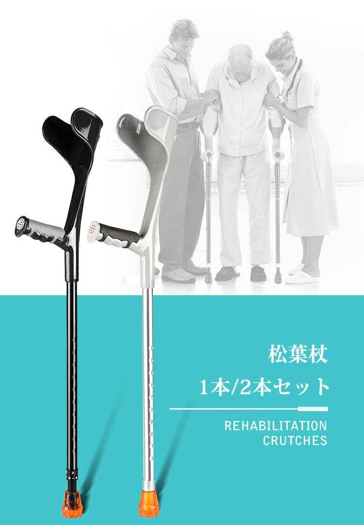 クラッチ杖 伸縮式 松葉杖 肘 付き ブラック 1本 シルバー 1本 ブラック 2本 シルバー 2本