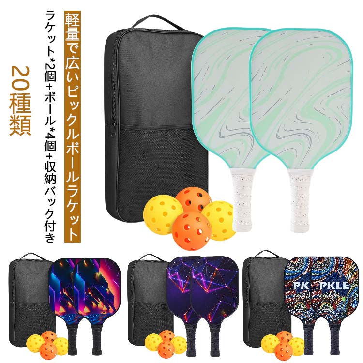 初心者 ピックルボール パドル パドルセット 子供 スポーツ 運動 グラスファイバー表面 大人 セット 中級者 ラケット*2個 収納バック インドア アウトドア ボール4個付き