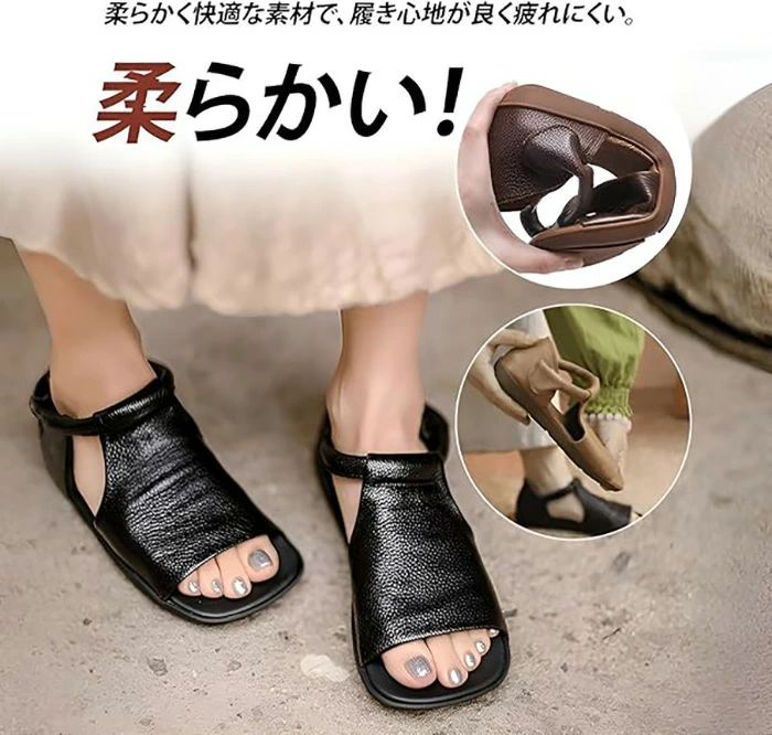 サンダル レトロなオープントゥ 滑り止め 通気快適 幅広 通気 美脚 オフィスサンダル オープントゥ 軽量 レディース