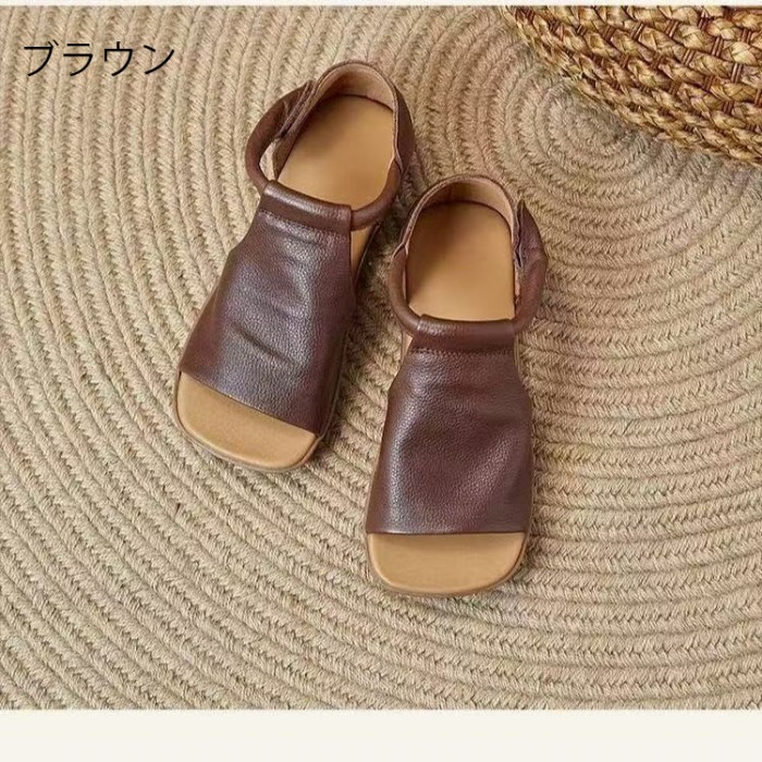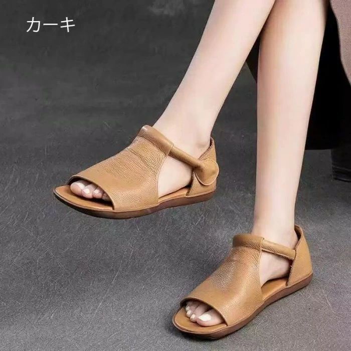 サンダル レトロなオープントゥ 滑り止 靴 特集 ブラック ブラウン カーキ 35(内寸22.5cm) 36(内寸23cm) 37(内寸23.5cm) 38(内寸24cm) 39(内寸24.5cm) 40(内寸25cm)