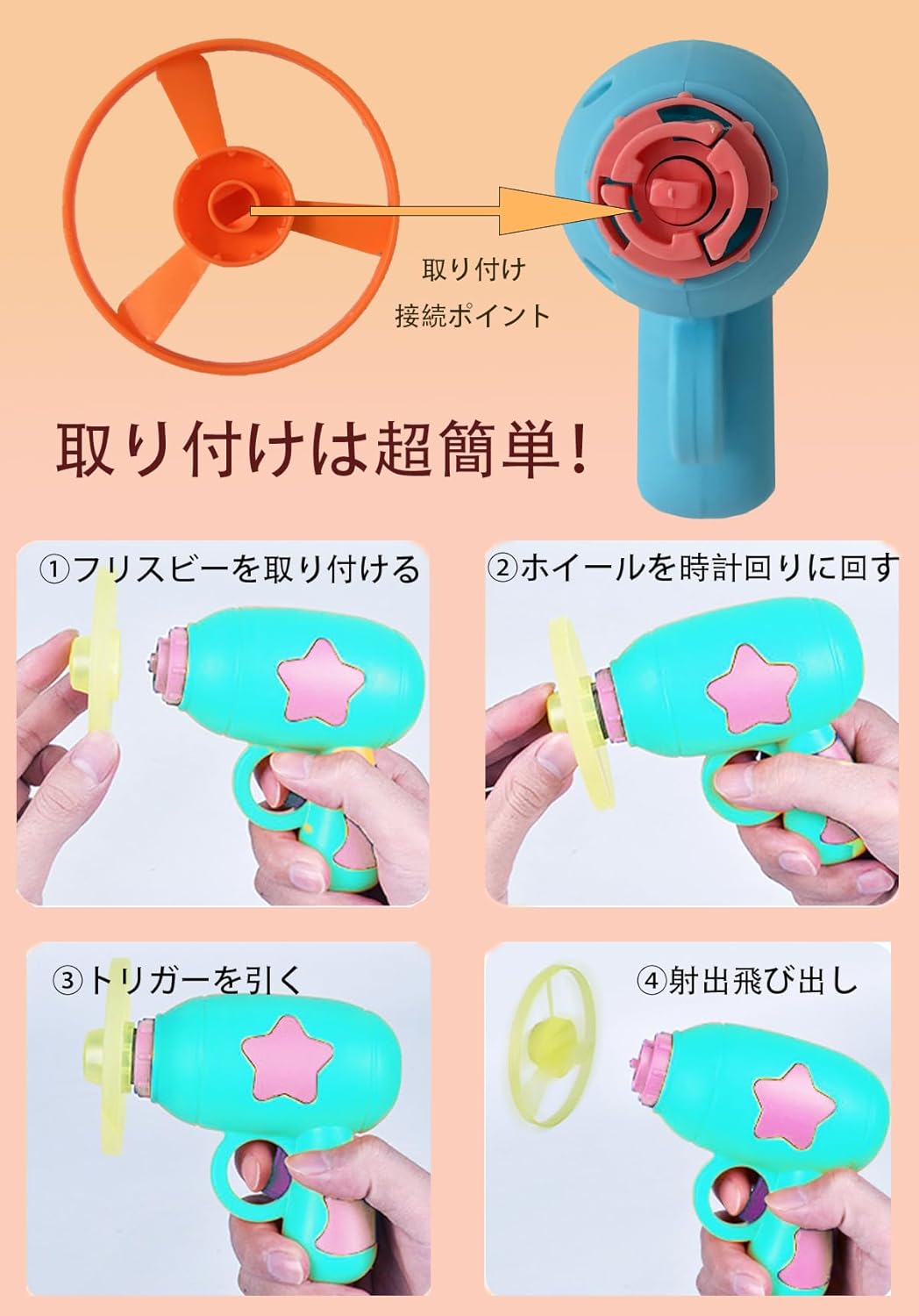 【商品仕様】素材:ABSプラスチック、サイズ:ランチャー-11cm×10.5cm、フリスビー-直径7.5cm