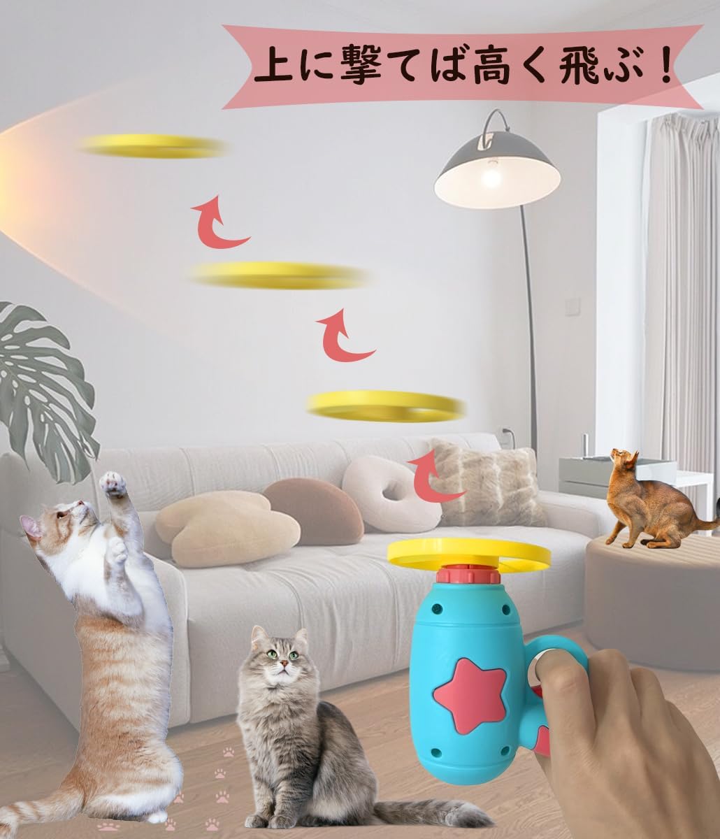 空飛ぶ 猫フェッチおもちゃ 猫プロペラおもちゃ フライングディスク おもちゃ フライングソーサー 飛ぶおもちゃ 猫じゃらし 投げるおもちゃ 猫のトラック 運動不足解消 ストレス解消 猫おもちゃ