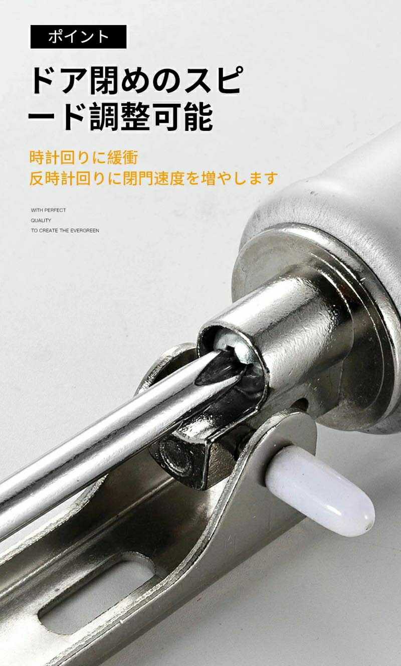 ドア閉めのスピード調整可能、カラーから自由に選択、 内蔵の高強度スプリング、強い引張力、優れた耐久性、アルミ合金材質を採用して、長持ち丈夫でお得な商品です