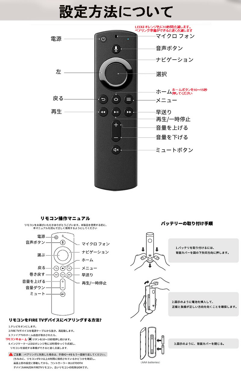 FireTVに同梱されていた元のリモコンがある場合:(新旧両方のリモコンが必要)