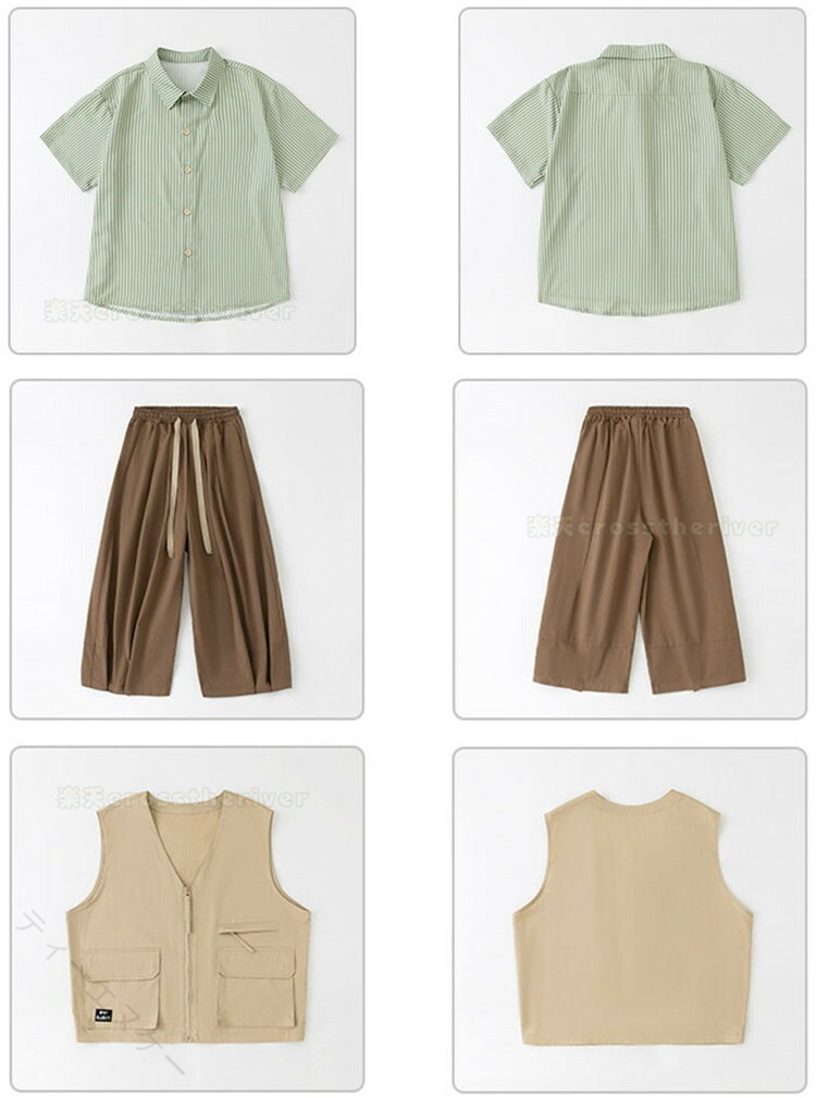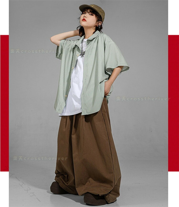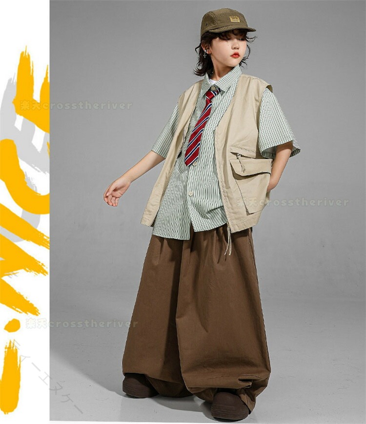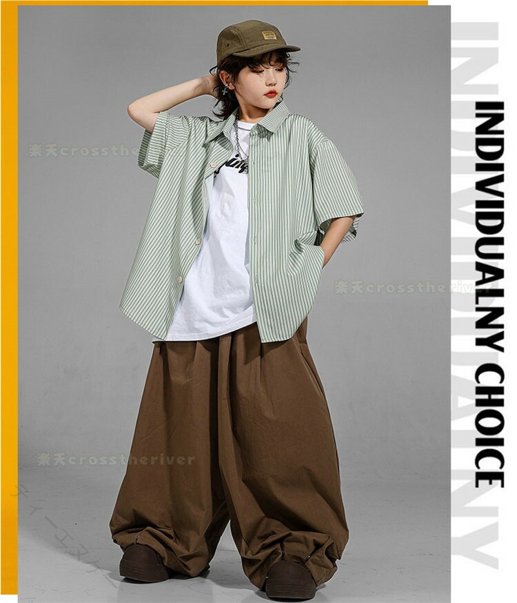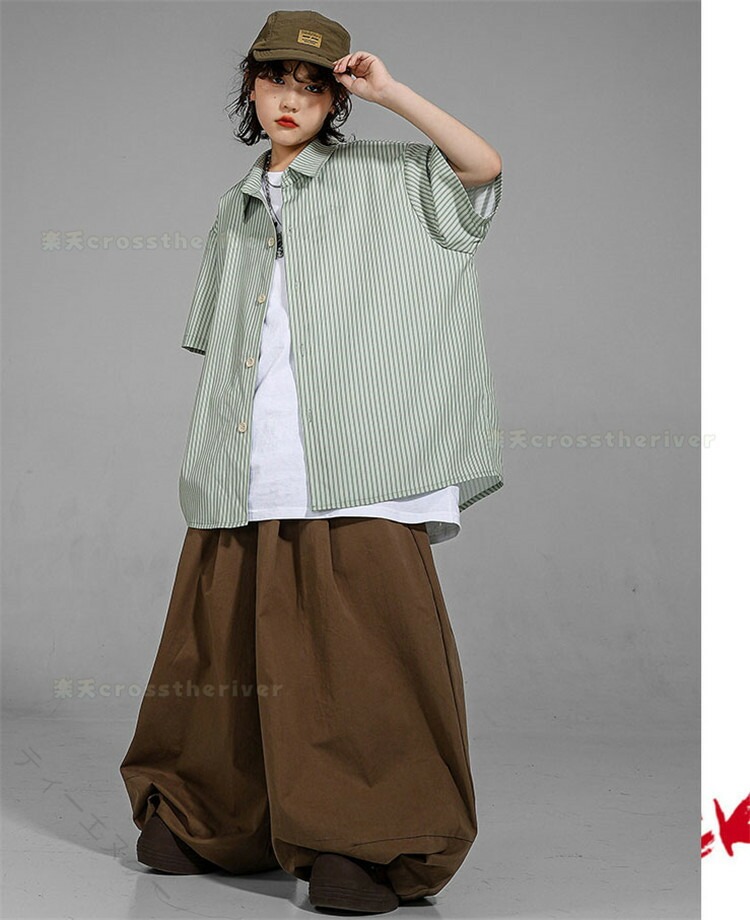 キッズダンス衣装 ストライプシャツ グリーンシャツ ヒップホップ衣装 演出服装 男の子ダンスウェア 女の子ダンスウェア k-pop衣装 ワイドパンツコーデ 個性的衣装 ダンスセット ゆるシアターシャツ